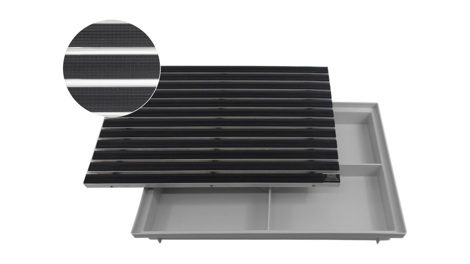 Die Fußmatte mit Gummieinlage wird für den Innen /- und Außenbereich empfohlen.