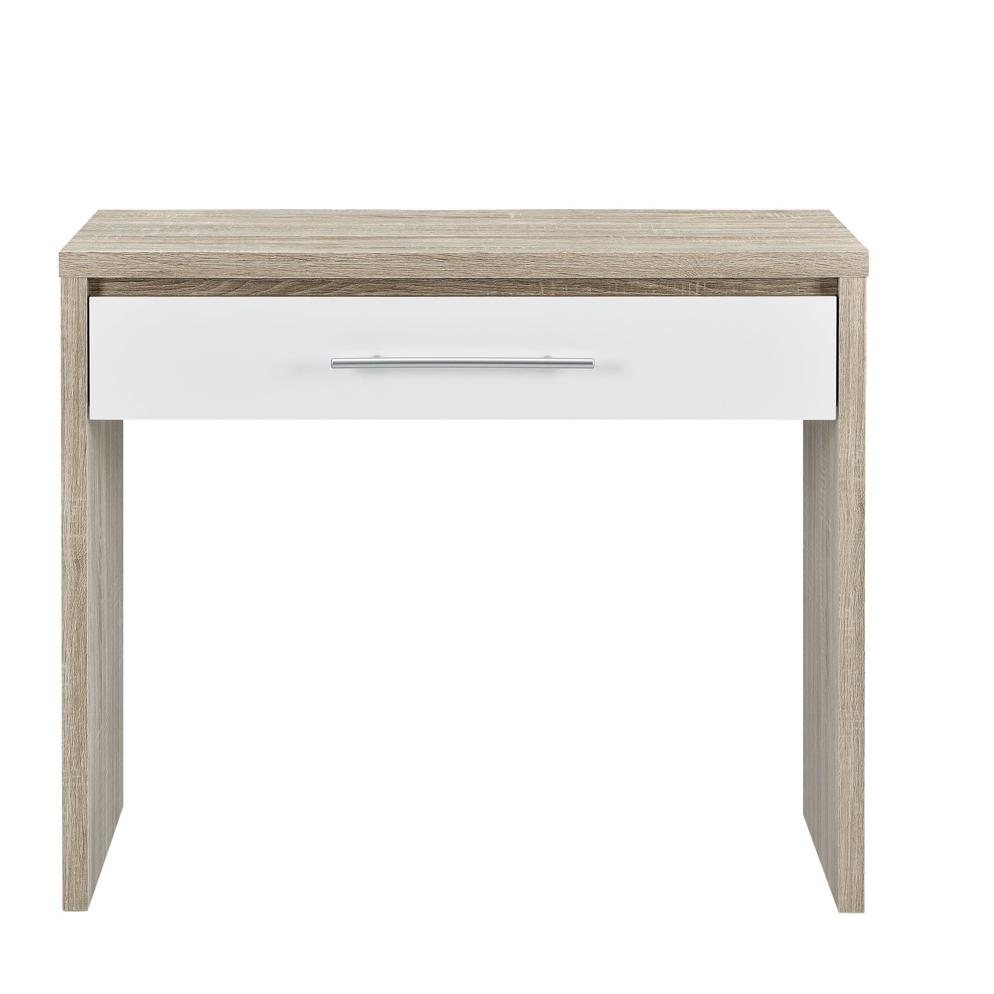 Der Schreibtisch bietet: - 1 Schublade - 1 schöne Arbeitsfläche - Tischbeine bestehen aus zwei modernen Platten - Griff der Schublade besteht aus edlem, gebürsteten Edelstahl