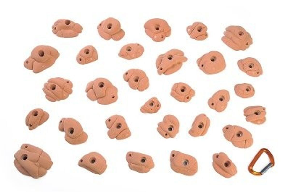 Klettergriffset Stone Pulse 2 - Entre Prises Neuauflage mit 30 überarbeiteten Formen in Naturoptik Mit diesem Set bietet Entre Prises 30 Griffe die dich mit verschiedensten Leisten, Henkeln und Zangen konfrontieren. Stone Pulse 2 bringt aufwändig geshapte Design-Griffe mit Naturfeeling an die Kunstwand und fördert Praxis-orientiertes Training. Die homogene Formgebung schont Finger und Gelenke. Die hautschonende Oberfläche ermöglicht schmerzfreies Training. Zusätzlich verfügen alle Klettergriffe ab Größe M über EPS das Explosion Proof System: Es minimiert durch einen im Klettergriff integrierten Draht das Verletzungsrisiko durch herabfallende Teile beim Griffbruch. Zur Befestigung an Holzplatten (mit etwas Luft hinter der Platte) werden neben Einschlagmuttern zusätzlich benötigt: 30 Stück Griffschraube M10x50 30 Stück Holzschraube 5x40 (optional) (Schrauben (und Muttern) sind nicht im Lieferumfang enthalten!)