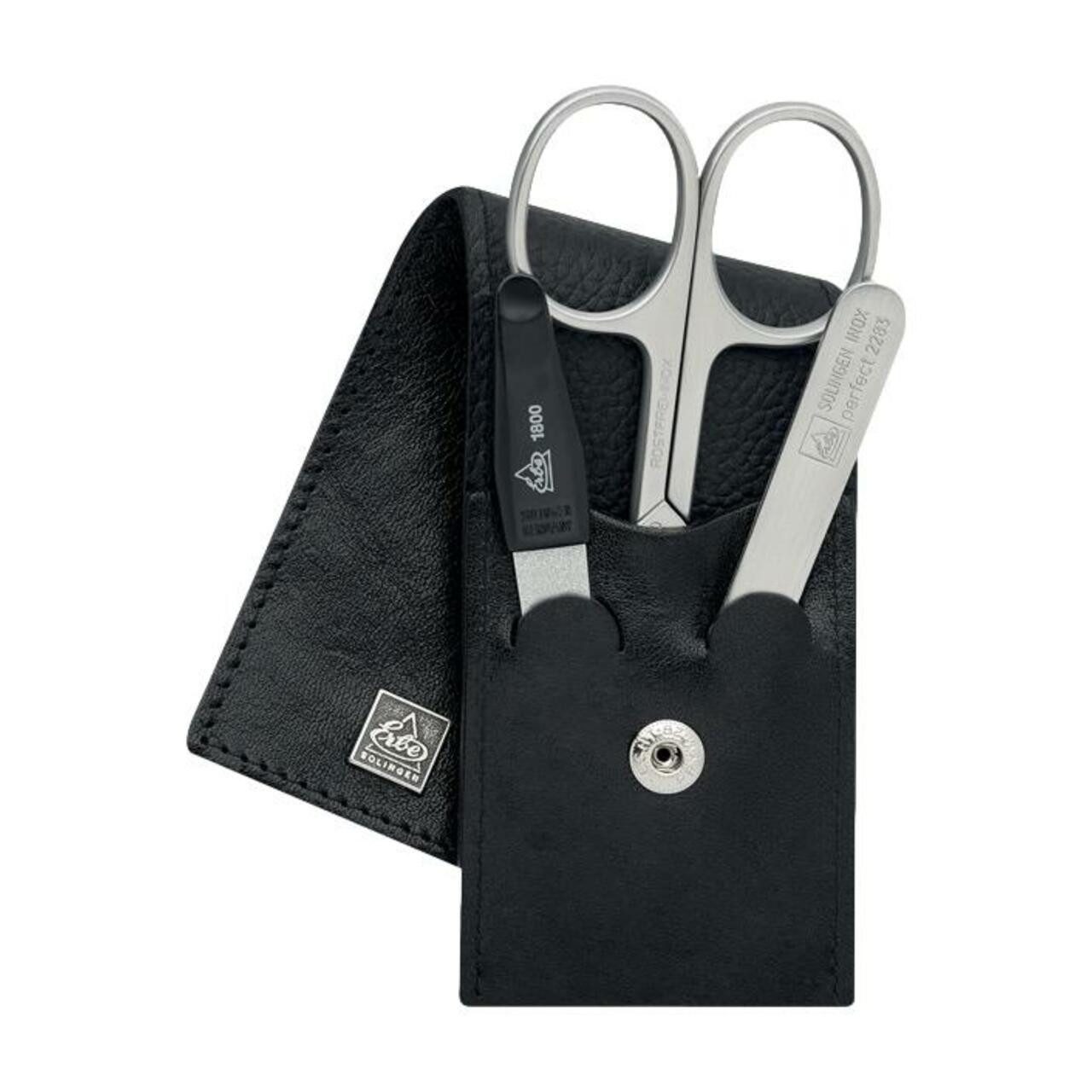 | Anwendung | Kombischere mit leicht gebogenen Schnittkanten zum präzisen und schonenden Schneiden der Nägel und der Nagelhaut. Pinzette mit schräger Spitze. Die breite, spitz auslaufende Greiffläche ermöglicht ein schnelles und präzises Zupfen einzelner Augenbrauen-Härchen. Saphir-Nagelfeile mit grober und feiner Feilfläche. Die grobe Seite ist perfekt zum schonenden Formen der Nägel. Die feine Seite dient zum Glätten der Nagelkanten. |