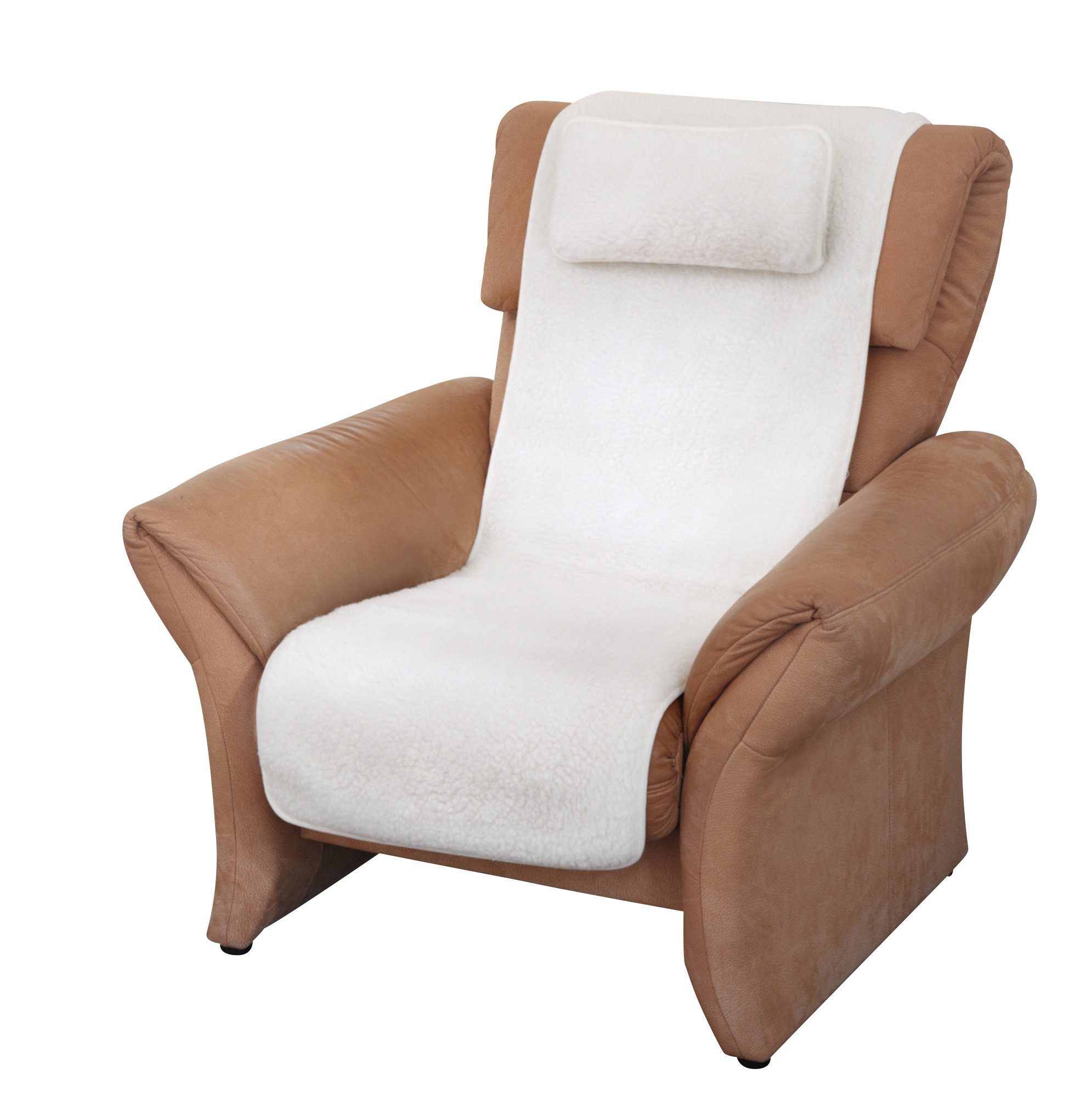 Erwin Müller Schurwoll-Sesselschoner mit Minikissen. Er schont Ihre Polster und sorgt für angenehmen Sitzkomfort. Die Oberfläche besteht aus reiner Schurwolle - lassen Sie sich von den hervorragenden Eigenschaften dieser hochwertigen Naturqualität verwöhnen. Sie fühlt sich wunderbar weich an, ist angenehm wärmend, atmungsaktiv sowie temperatur- und feuchtigkeitsausgleichend. Ein bequemes Minikissen aus reiner Schurwolle stützt den Kopf, es wird per Klettverschluss befestigt. Die Position des Minikissens kann über das Versetzen des Sesselschoners geändert werden. Rundum mit dekorativer Bandeinfassung.
