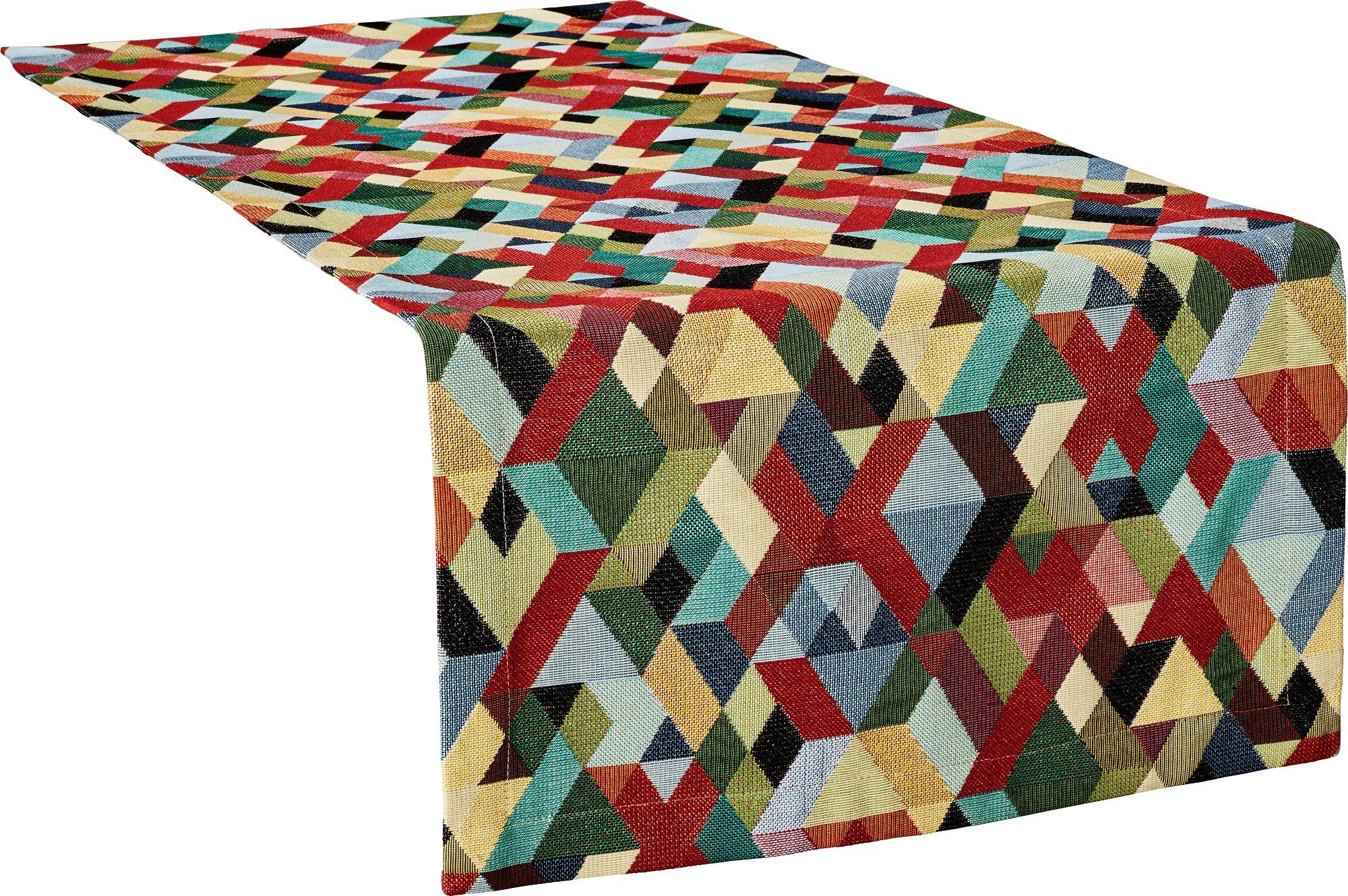 Erwin Müller Tischläufer. Fröhlich bunt und modern zeigt sich das ausgefallene Grafikmuster. Es verbreitet eine angenehme und zugleich frische Atmosphäre rund um Ihren Tisch. Durch die hochwertige Jacquard-Webung kommt das hübsche Dessin besonders schön zur Geltung. An dieser Qualität haben Sie lange Zeit Ihre Freude. Das schwere, strapazierfähige Material ist pflegeleicht und beständig.