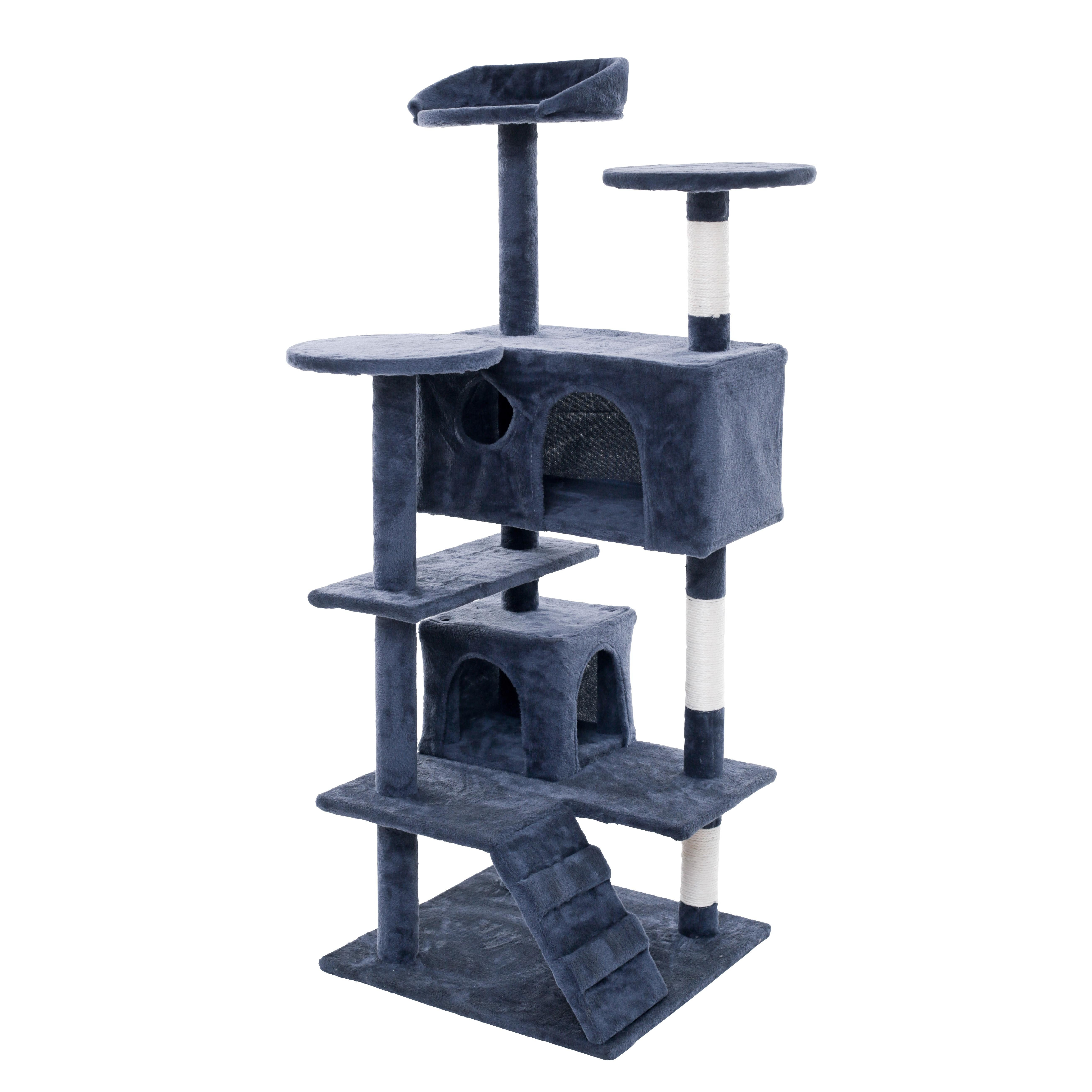 Gesamtmaß inkl. aller Aufbauten (BxTxH): ca. 57 x 57 x 130 cm Maße Bodenplatte (BxTxH): ca. 49 x 49 x 2 cm Maße kleine Höhle (BxTxH): ca. 25 x 25 x 21 cm Maße große Höhle (BxTxH): ca. 50 x 25 x 25 cm Durchmesser runde Liegeflächen: ca. 30 cm