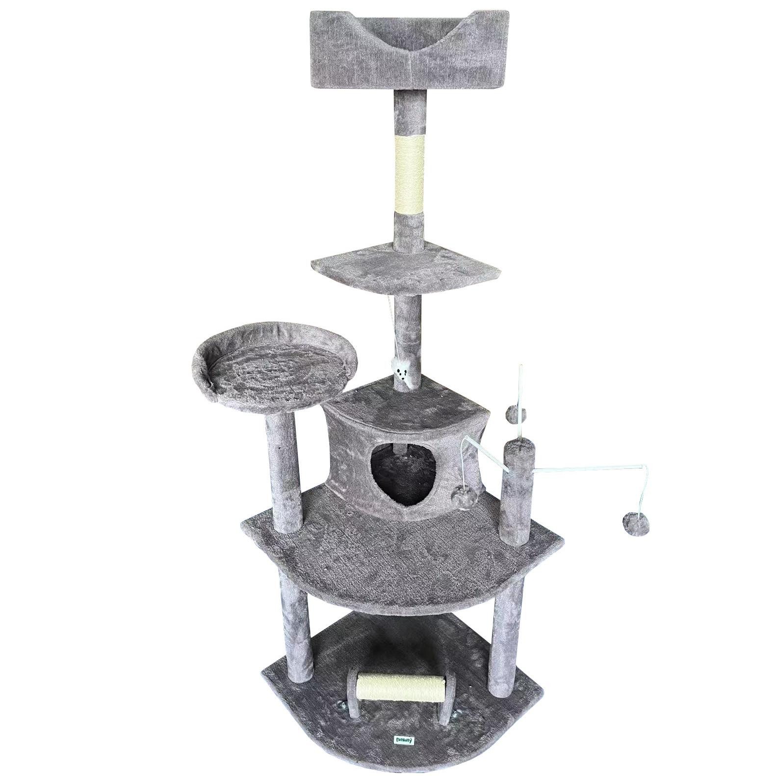 Entdecken Sie unseren hochwertigen Kratzbaum, perfekt für Katzen, die gerne ihre Krallen wetzen und dabei eine gemütliche Ruhezone suchen. Mit einer beeindruckenden Höhe von ca. 163 cm bietet dieser Kratzbaum nicht nur ausreichend Kratzflächen, sondern auch verschiedene Liegemöglichkeiten und eine gemütliche Höhle. Der Kratzbaum ist speziell für Zimmer Ecken konzipiert, kann aber überall im Raum aufgestellt werden.