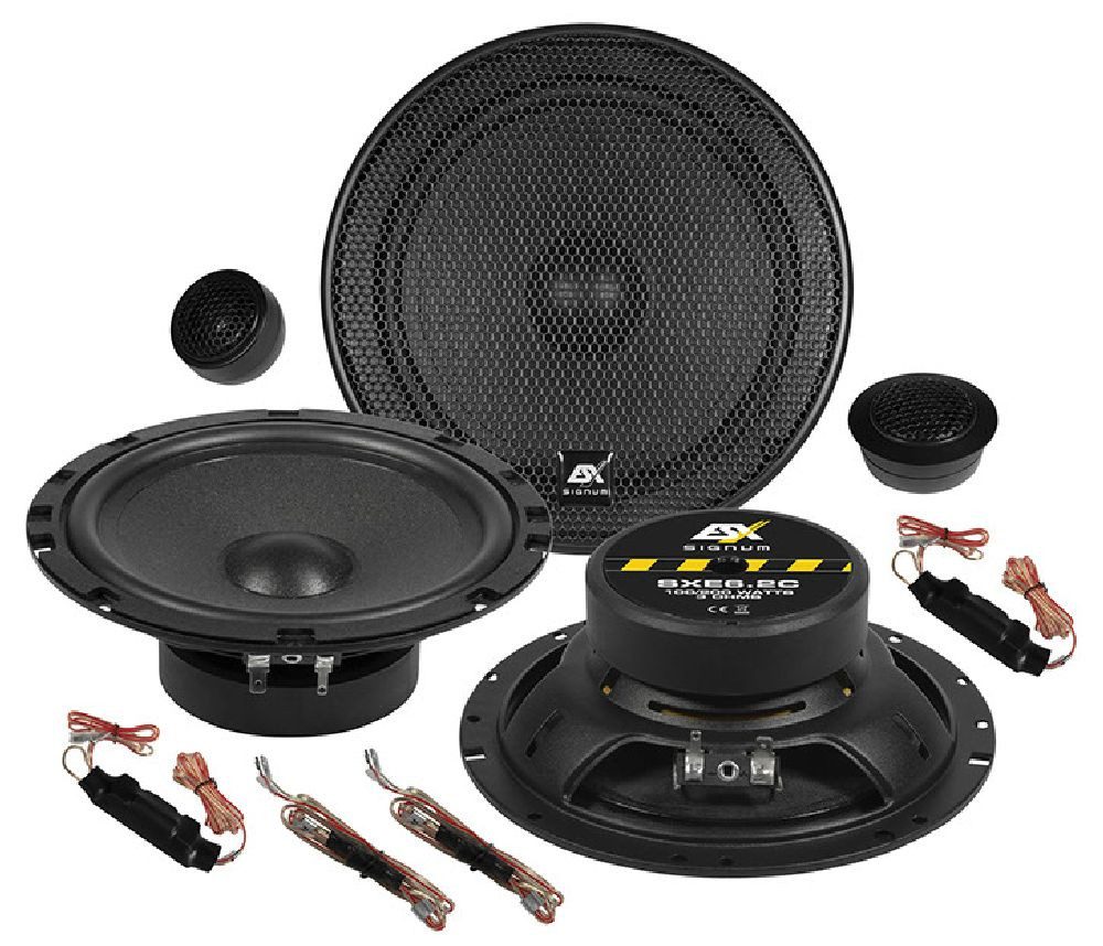 Die neuen SIGNUM SXE Lautsprecher sind die Lösung schlechthin, wenn wenig Platz für den Einbau vorhanden ist. Möglich machen dies die flach aufgebauten, verwindungssteifen Stahlkörbe, die dennoch einen erstaunlichen Hub wie bei weitaus tieferen Lautsprechern liefern. Die sehr leichten und mit speziellem Quarzsand beschichteten Papier-Membranen sorgen für einen hohen Wirkungsgrad, während die 20 mm Gewebehochtöner mit kompakten Einbaumaßen einen sehr linearen Frequenzgang im Zusammenspiel mit den Bässen bei 3 Ohm Impedanz wiedergeben. Die ebenfalls sehr kompakten Kabelfrequenzweichen – jeweils Hochtöner und Bass getrennt (außer bei SXE4.2C) - sind überall leicht zu integrieren.