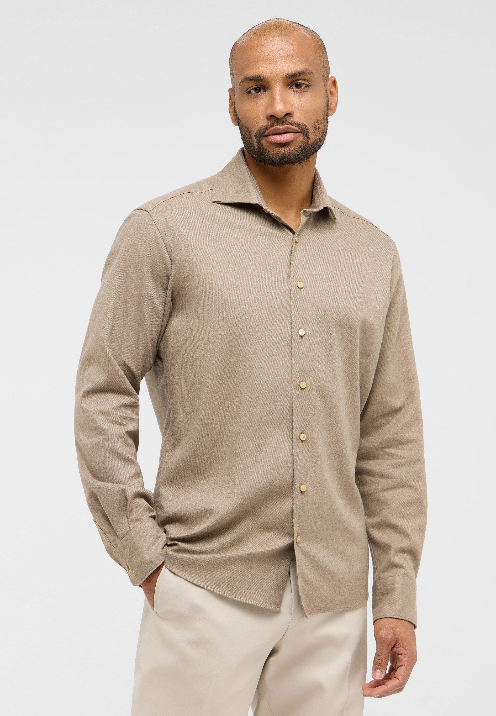 Dieses unifarbene Flanell-Langarmhemd ist in bügelleichter Qualität gefertigt (52% Baumwolle, 38% Lyocell, 10% Schurwolle) und erfüllt höchste Ansprüche an einen weichen Griff und besten Tragekomfort.