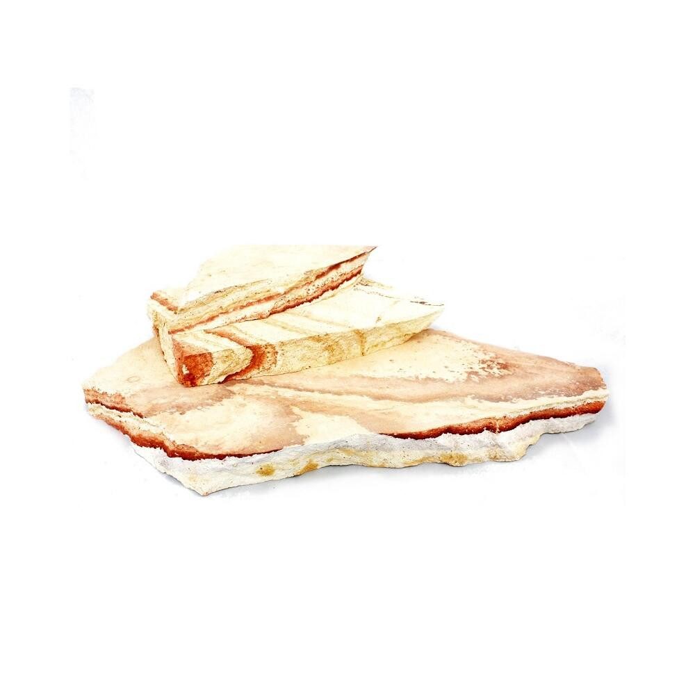 Durch die einzigartige farbige Linienzeichnung der Platten von rot, beige bis hin zu braun sind diese Naturplatten ein ganz besonderer Blickfang.