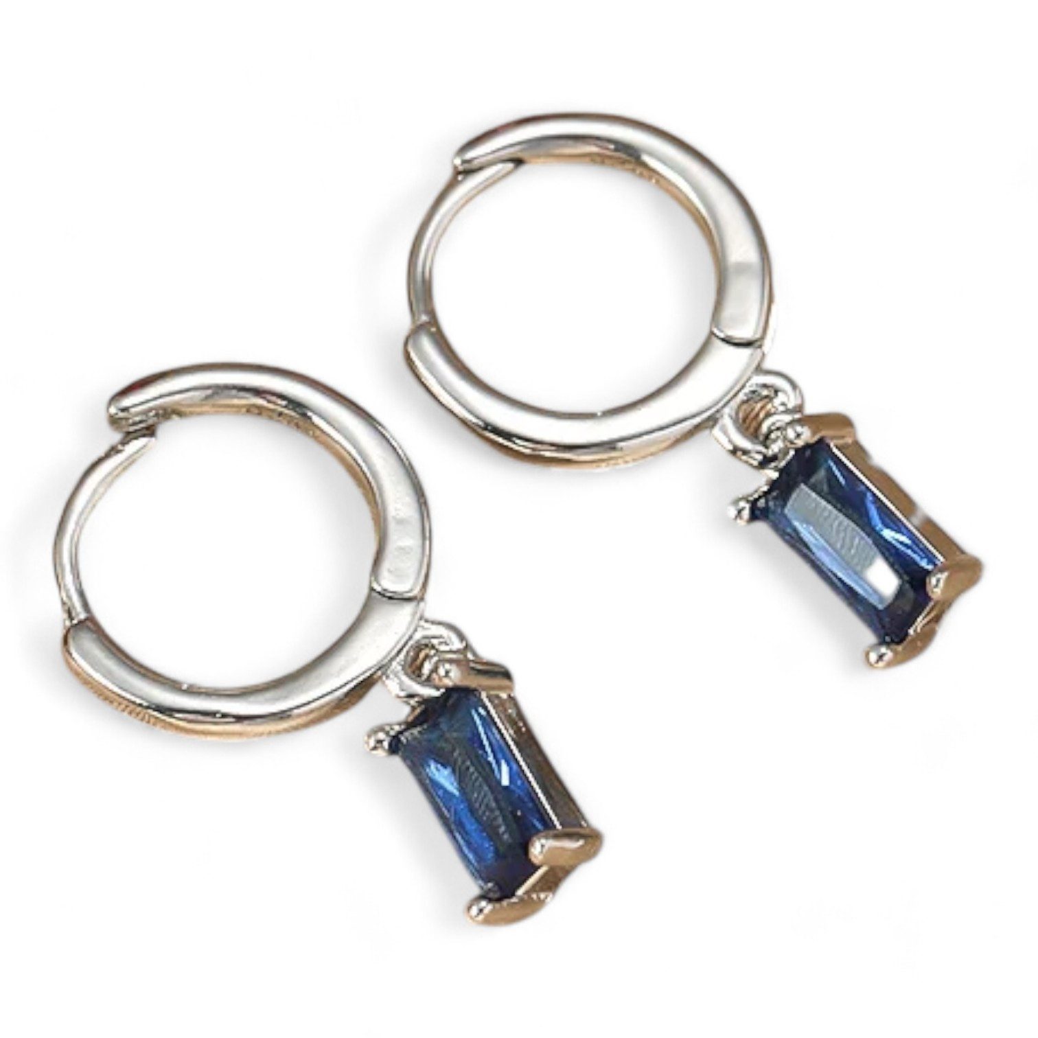 Ohrringe Creolen mit hängendem blauen oder roten Zirkonia Stein. Ohrringe in Silber.