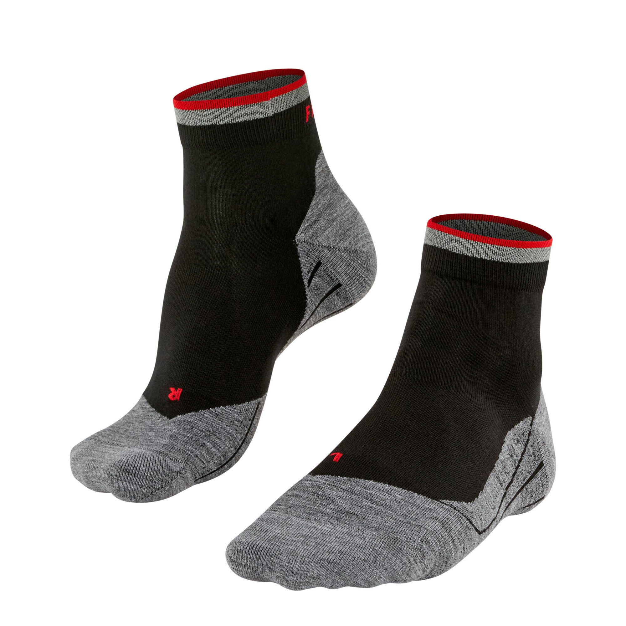 Falke Herren Laufsocken RU4 Endurance Short Reflect. Mit ihrer mittelstarken Polsterung ist die knöchellange Laufsocke RU4 Short für Herren unsere Allrounder-Socke. Sie sorgt für ausgewogenen Schutz mit mittlerer Dämpfung sowie guten Schuhkontakt. Die Polsterung bietet außerdem für Schutz vor Blasen durch Reduzierung der Druckstellen. Schneller Feuchtigkeitstransport sowie die optimale Passform garantieren angenehme und sportliche Jogging-Einheiten. Ein Streifen aus reflektierendem Garn erhöht die Sichtbarkeit und damit die Sicherheit bei schlechten Lichtverhältnissen. Leichte Laufsocken mit mittlerer Polsterung. Feuchtigkeitsableitende 3-Lagen-Konstruktion, die die Füße trocken und blasenfrei hält. Optimale Passform, angepasst an die spezifischen Anforderungen des jeweiligen Fußes (echter L/R-Fuß). Ultraschnell feuchtigkeitsabsorbierende Baumwollmischung. Reflektierende Designdetails. Mittlere Polsterung zum Schutz von Belastungszonen und für Komfort. Material: 41% Polypropylen, 30% Baumwolle, 26% Polyamid, 2% Polyurethan, 1% Elasthan.