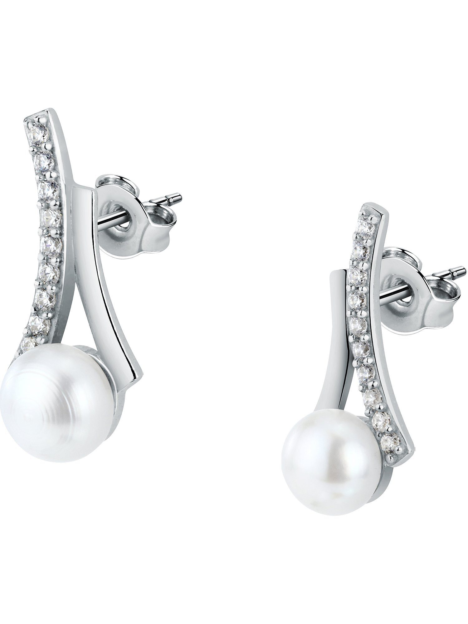 Du liebst schicke Outfits? Dann gehören diese Ohrstecker von FAVS definitiv in dein Schmuckkästchen! Die geschwungenen Formen aus 925er Silber, gespickt mit 10 Zirkonia, sind nicht das Einzige, das die Accessoires in modische Hingucker verwandelt. Dazu gesellt sich jeweils eine Perle, die deinen Look in den Charme vergangener Zeiten hüllt.