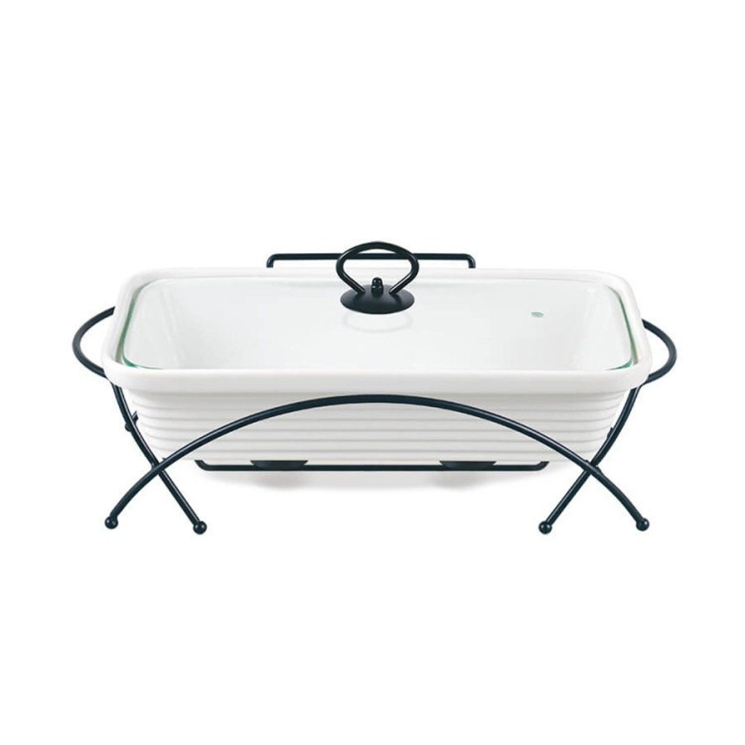 Der rechteckige Speisenwärmer in Weiß mit einem Fassungsvermögen von 2,4 Litern, Modell MR-11562-73, ist die perfekte Lösung für alle, die Eleganz und Funktionalität in der Küche schätzen. Er ist aus hochwertiger Keramik gefertigt und garantiert Langlebigkeit und leichte Reinigung. Der Glasdeckel präsentiert die Speisen nicht nur eindrucksvoll, sondern sorgt auch dafür, dass sie länger auf der richtigen Temperatur gehalten werden.