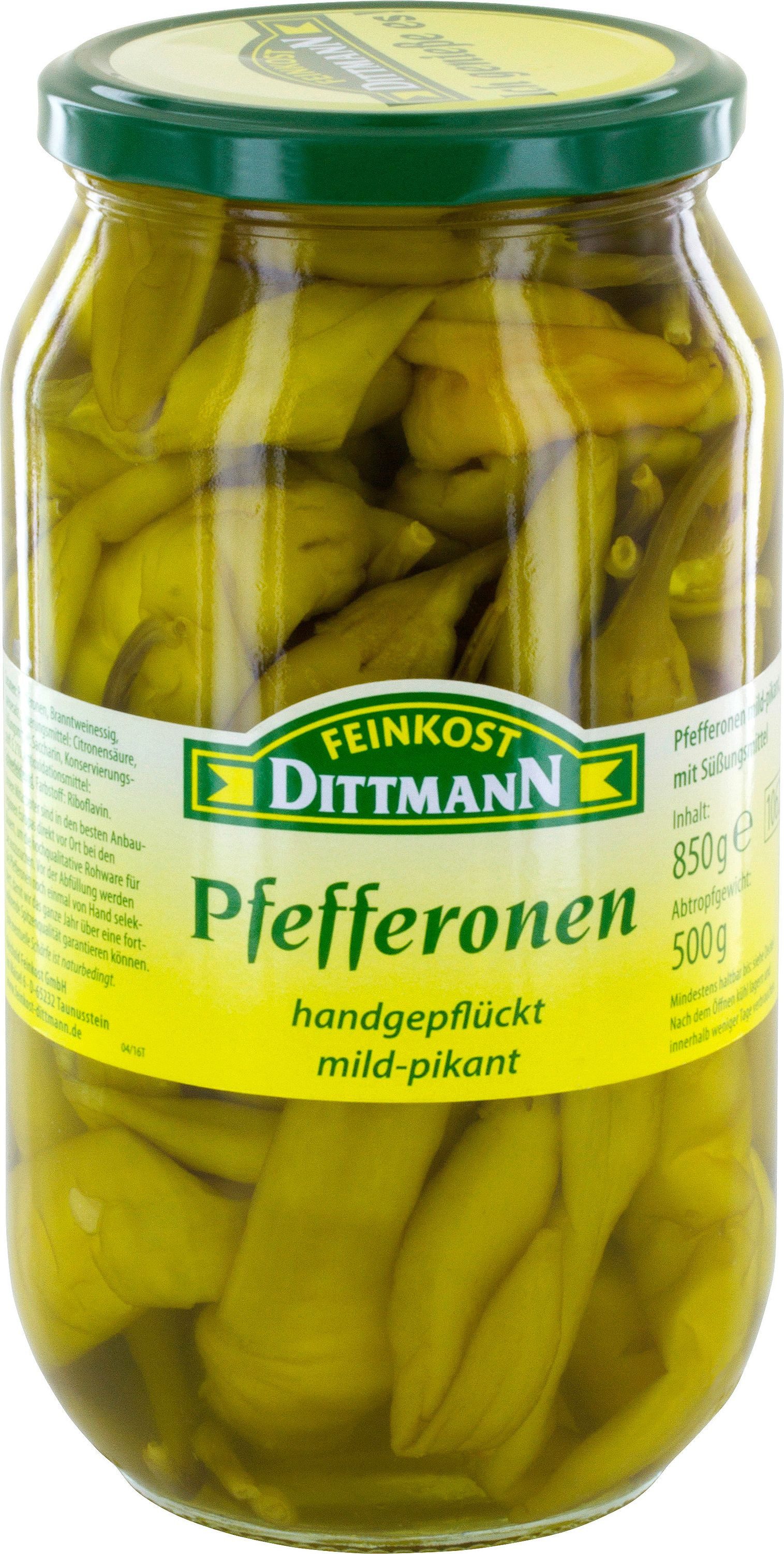 | Bezeichnung des Lebensmittels | Feinkost Dittmann Pfefferonen grün und mild pikant im Glas 850g |