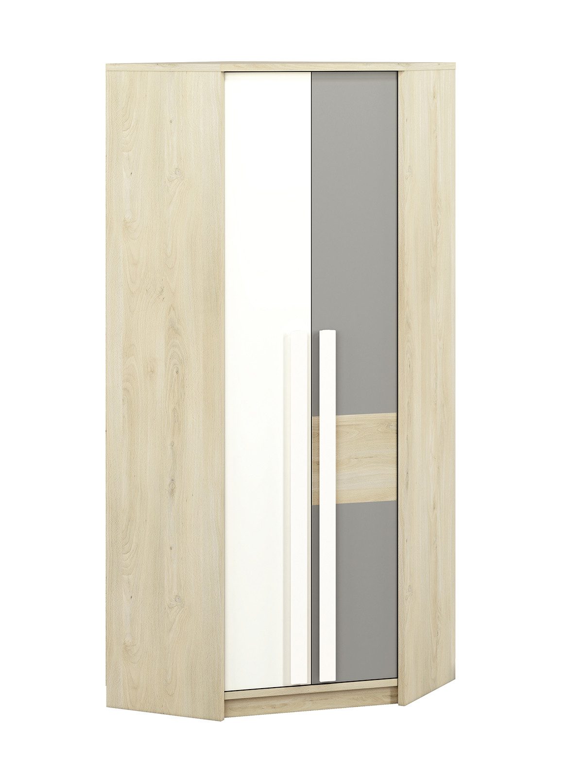 Der moderne und geräumige Eckschrank in harmonischen Farben, lässt sich wunderbar kombinieren und bietet Ihnen viel Stauraum.