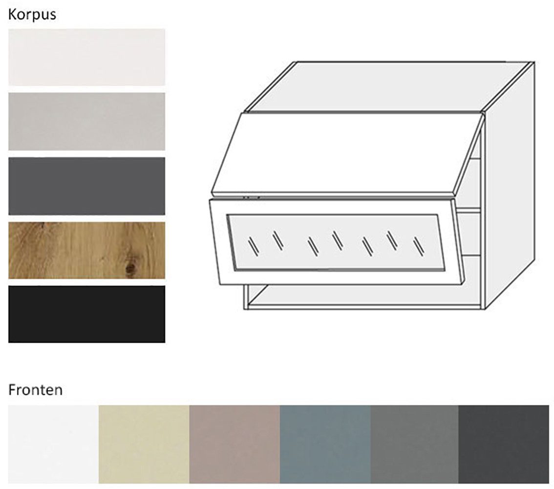 | Ausstattung | 1-türig mit 2-teiliger Hochfaltklappe, Milchglaseinsatz |