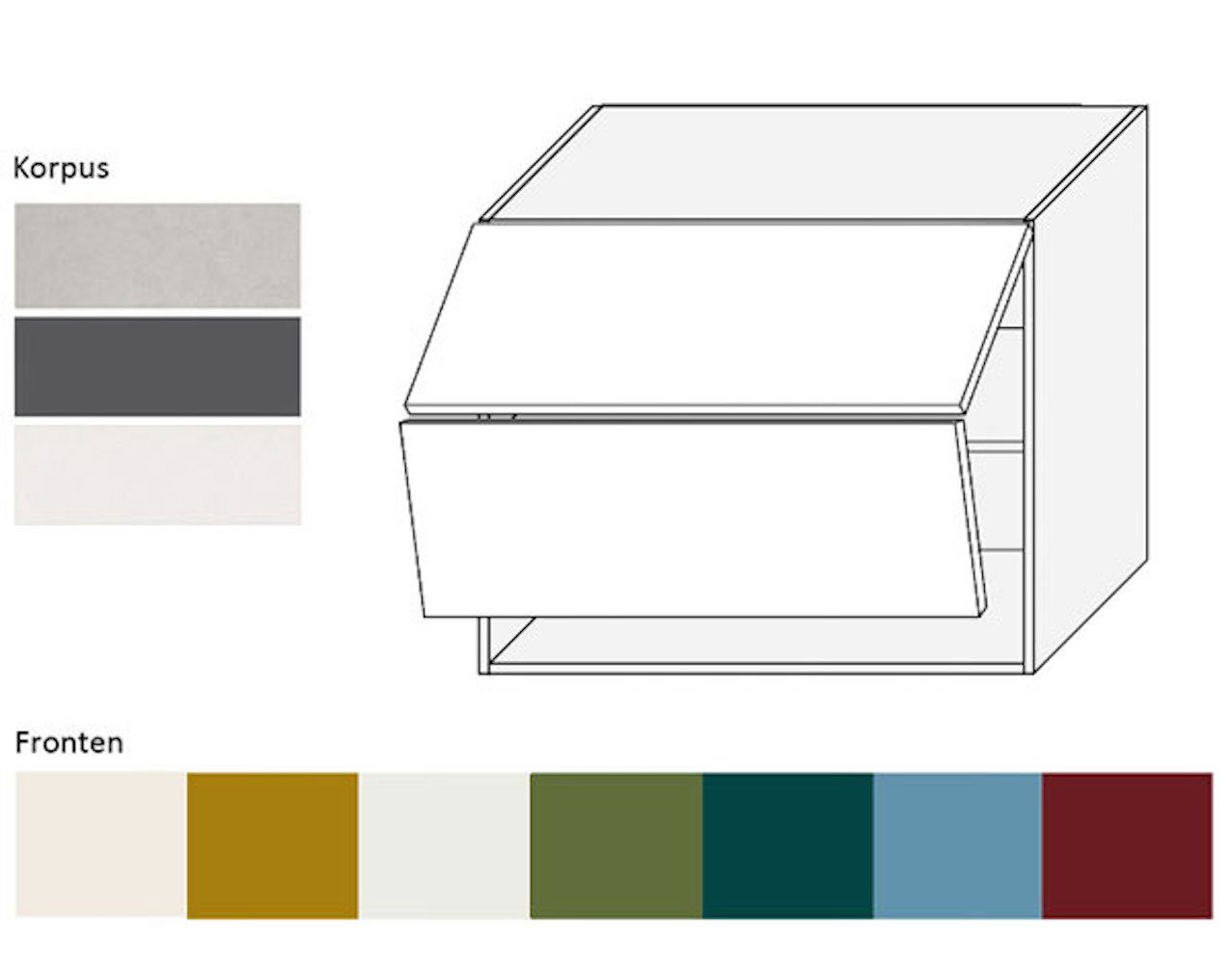 Hängeschrank mit 2-teiliger Hochfaltklappe / Aventos Klappenbeschlag / Soft-Close Funktion / Kassetten-Optik / Fronten Matt lackiert