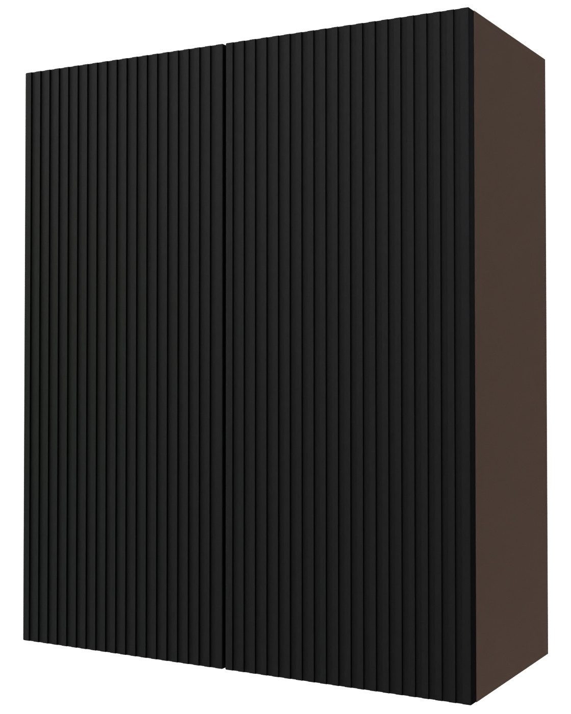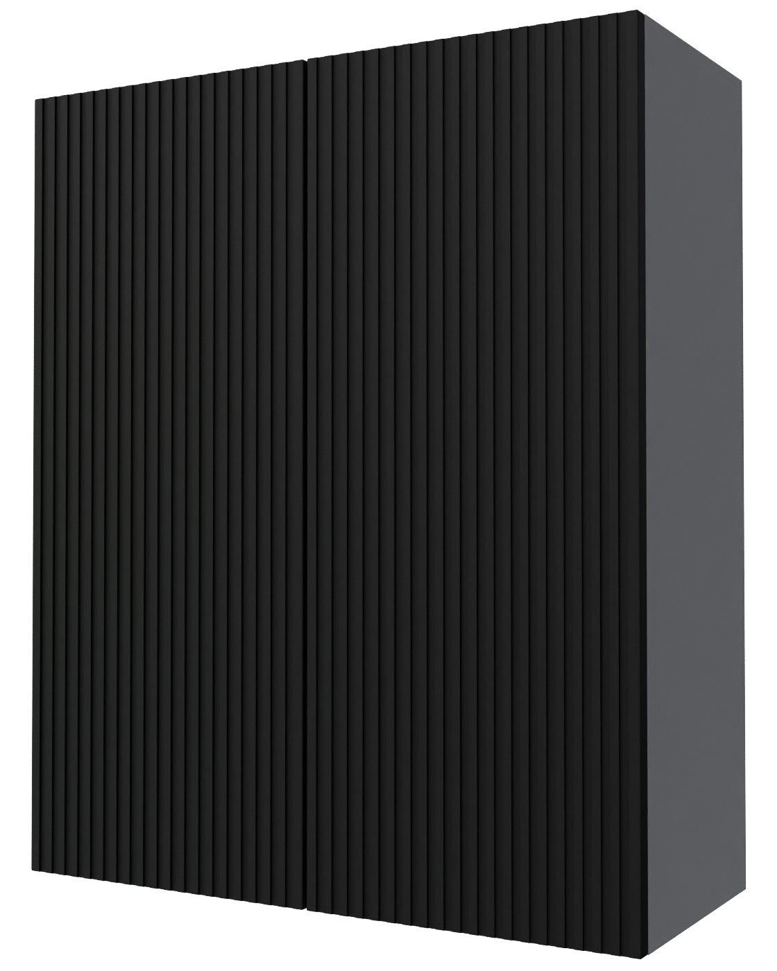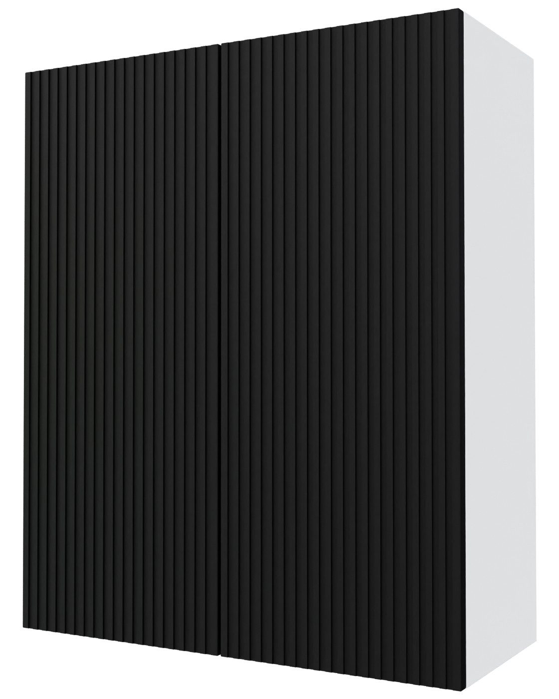 Das besondere Merkmal dieser hochwertigen Küchenschränke bilden die schwarz matt lackierten MDF-Fronten in Lamellen-Optik.
