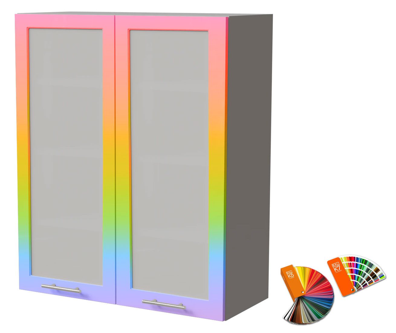 Hängeschrank / 2-türig mit Milchglaseinsatz / Soft-Close-Funktion / Fronten lackiert