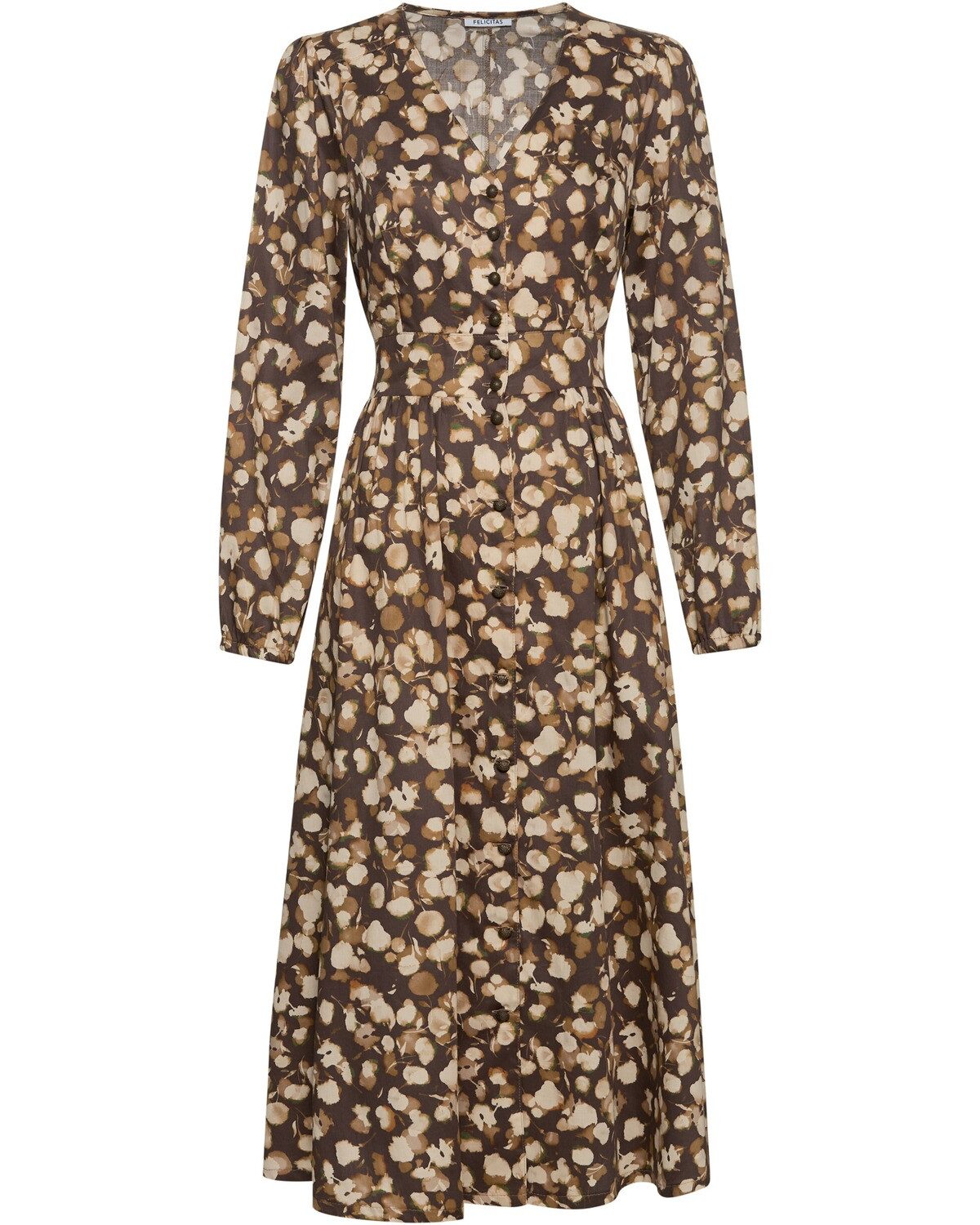 Das Kleid Karlinda von FELICITAS überzeugt durch seine Vielseitigkeit und charmante Ausstrahlung. Gefertigt aus hochwertiger Baumwolle, bietet es ein angenehmes Tragegefühl und einen eleganten V-Ausschnitt, der das Dekolleté geschmackvoll in Szene setzt. Der durchgehende Knopfverschluss und der ansprechende Printstoff verleihen dem Kleid einen besonderen Reiz und machen es zu einem echten Highlight in jeder Garderobe. Praktische Eingriffstaschen sorgen für zusätzlichen Komfort und Funktionalität, während die stilvolle Blende in der Taille des Vorderteils die Silhouette vorteilhaft betont. Eine gesmokte Partie im Rückenteil gewährleistet eine perfekte Passform und Bewegungsfreiheit, sodass das Kleid sowohl für den Alltag als auch für besondere Anlässe ideal geeignet ist. Die leicht weit geschnittenen Ärmel, die am Armloch gerafft sind und am Saum mit einem Gummizug abschließen, verleihen dem Kleid eine verspielte Eleganz. Ob bei einem entspannten Treffen mit Freunden oder zu festlichen Anlässen, das Kleid Karlinda lässt sich vielseitig kombinieren und ist die perfekte Ergänzung für jede Garderobe. Mit einer gelungenen Kombination aus Stil und Komfort ist es die ideale Wahl für alle, die ihrem Look einen Hauch von Charme verleihen möchten. Ein absolutes Must-have für modebewusste Frauen. Oberstoff: 100% Baumwolle