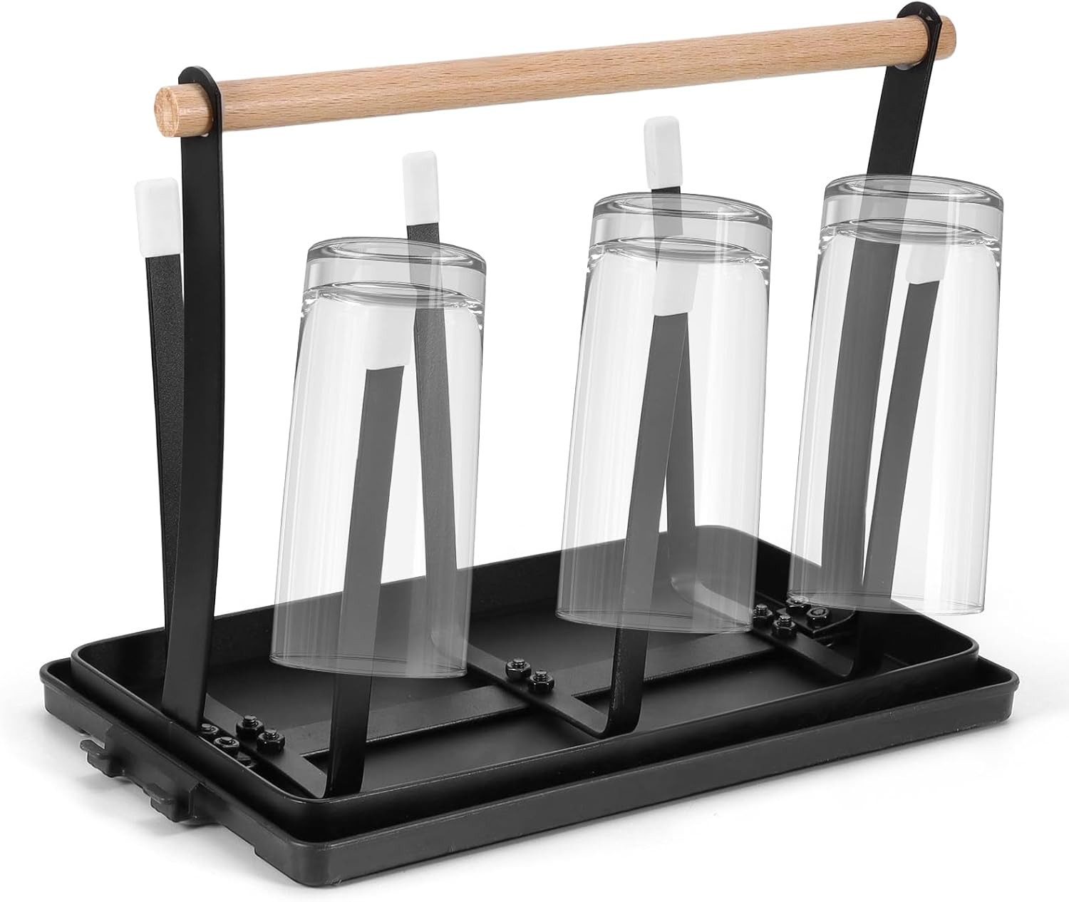 6 vertikale Ablagefächer sparen 50 % Platz auf der Arbeitsfläche: Das vertikale Abtropfgestell bietet Platz für sechs Flaschen/Becher unterschiedlicher Größe und spart so mehr Platz als herkömmliche Abtropfgestelle. Stellen Sie sich vor: Frisch gespülte Flaschen, Wasserbecher und Gläser stehen übersichtlich auf dem Abtropfgestell, und die Arbeitsfläche bleibt sauber! Wasserschale unten hält die Arbeitsfläche trocken: Das Abtropfgestell verfügt über eine Abtropfschale, die Wasserflecken auffängt und so die Küchenarbeitsfläche vor Nässe schützt. Stellen Sie die Tasse nach dem Spülen einfach ab, und die Wassertropfen fließen automatisch in die Schale – Schluss mit lästigem Tischwischen! Kratzfeste Silikonschale zum Schutz wertvoller Utensilien: Jedes Abtropfgestell ist oben mit einer abnehmbaren Silikonunterlage ausgestattet, um Kratzer an Gläsern und Flaschen zu vermeiden. Stellen Sie die Babyflasche nach dem Spülen einfach zum Trocknen auf das Abtropfgestell – und schonen Sie den Flaschenboden! 2 kg, extrem belastbar, stabil und wackelfrei: Der verstärkte Eisenfuß des Flaschenhalters ist 40 % schwerer als herkömmliche Flaschenhalter und mit einer rutschfesten Silikonstange ausgestattet, sodass selbst hochhackige Gläser sicher daraufgestellt werden können. Selbst beim Abtrocknen von sechs Wasserflaschen gleichzeitig bleibt der Gläserhalter wackelfrei! Minimalistisches Design, passend zu verschiedenen Einrichtungsstilen: Der Flaschenhalter für Limonaden hat eine klassische schwarze Eisenform, die modern, schlicht und praktisch ist. Er sieht in Küche, Wohnzimmer oder Büro wunderschön aus. Freunde, die zu Besuch kommen, fragen beim Anblick dieses hübschen Halters unweigerlich nach dem Link!