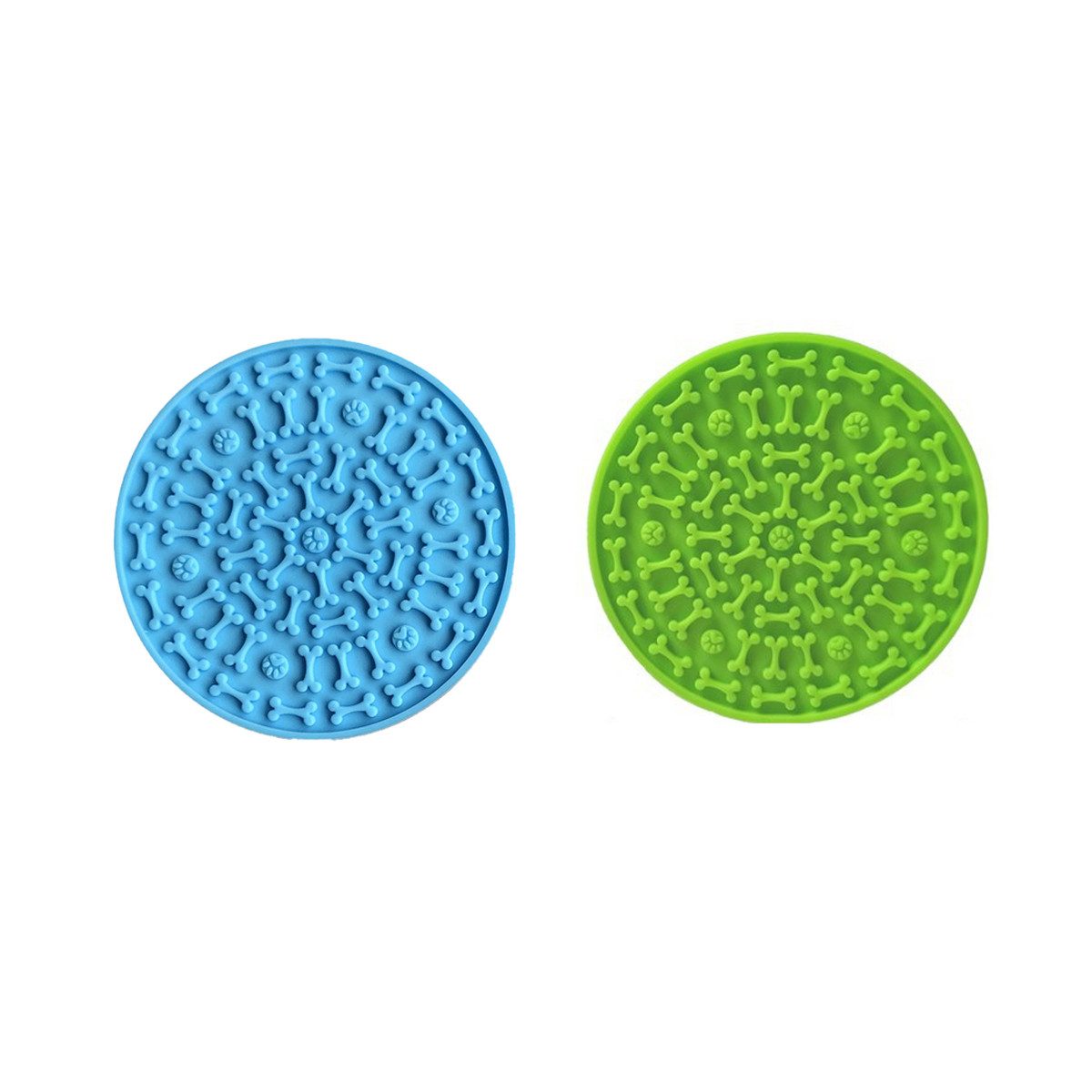MaterialsicherheitDas Hund Lecken Pad Set enthält 2 X Fressnapf und 1 Silikonspatel. Hergestellt aus der ersten Wahl von Silikonrohstoffen in Lebensmittelqualität, BPA-frei, langlebig, flexibel, wasserdicht und faltbar, Fütterung sicherer.Das Hundeleckkissen mit einem Durchmesser von 15 CM hat die ideale Größe für Katzen, Welpen, kleine und mittelgroße Hunde und große Hunde. Starke Saugnäpfe Auf der Rückseite des Hund Lecken Matte befinden sich 37 Super Stark Saugnäpfe, die an jeder glatten Oberfläche wie Fliesen, Metall, Glas, Badewanne, Marmor usw. haften können. Es ist nicht für unebene Oberflächen wie z B. gestrichene Wände, Tapeten etc. Sie können es an die Größe Ihres Haustieres anpassen, um die Halswirbelsäule Ihres Haustieres zu schützen. Einfach zu Bedienen und Zu Reinigen: Verteilen Sie einfach das Lieblingsfutter Ihres Haustieres auf der schleckmatte und kleben Sie es auf die glatte Oberfläche. Sie können die Hundeunterlage von Hand oder in der Spülmaschine waschen, um Essensreste von der Oberfläche zu entfernen und für den nächsten Gebrauch trocknen. Es ist beständig gegen hohe und niedrige Temperaturen und hält Temperaturen von -40 °C bis 200 °C stand Langsames Füttern: Füttern Sie langsam und verbessern Sie die Verdauung. Das Schleckmatte Hund ist ein einzigartiger langsamer Futternapf für Hunde, Welpen, Katzen und Kätzchen. Wie Frischkäse, Joghurt, Erdnussbutter usw. 100 % antimikrobielles Silikon zugelassen. Super starke Befestigung dank seiner aerodynamischen Struktur. Das Fressnapf kann ohne Beschädigung gebissen und gekratzt werden, ist recycelbar und sehr umweltfreundlich. Von Tierärzten und Trainern Empfohlen: Die spezielle Textur des Leckkissens zieht die Aufmerksamkeit des Hundes auf sich und erleichtert Ihnen so die Badezeit oder andere Dinge. Es kratzt auch Speisereste und geruchsverursachende Bakterien von der Zunge Ihres Haustieres und sorgt so für einen frischeren Atem. Lindert effektiv die Angst beim Baden, Pflegen, Nagelschneiden und Wundpflege.