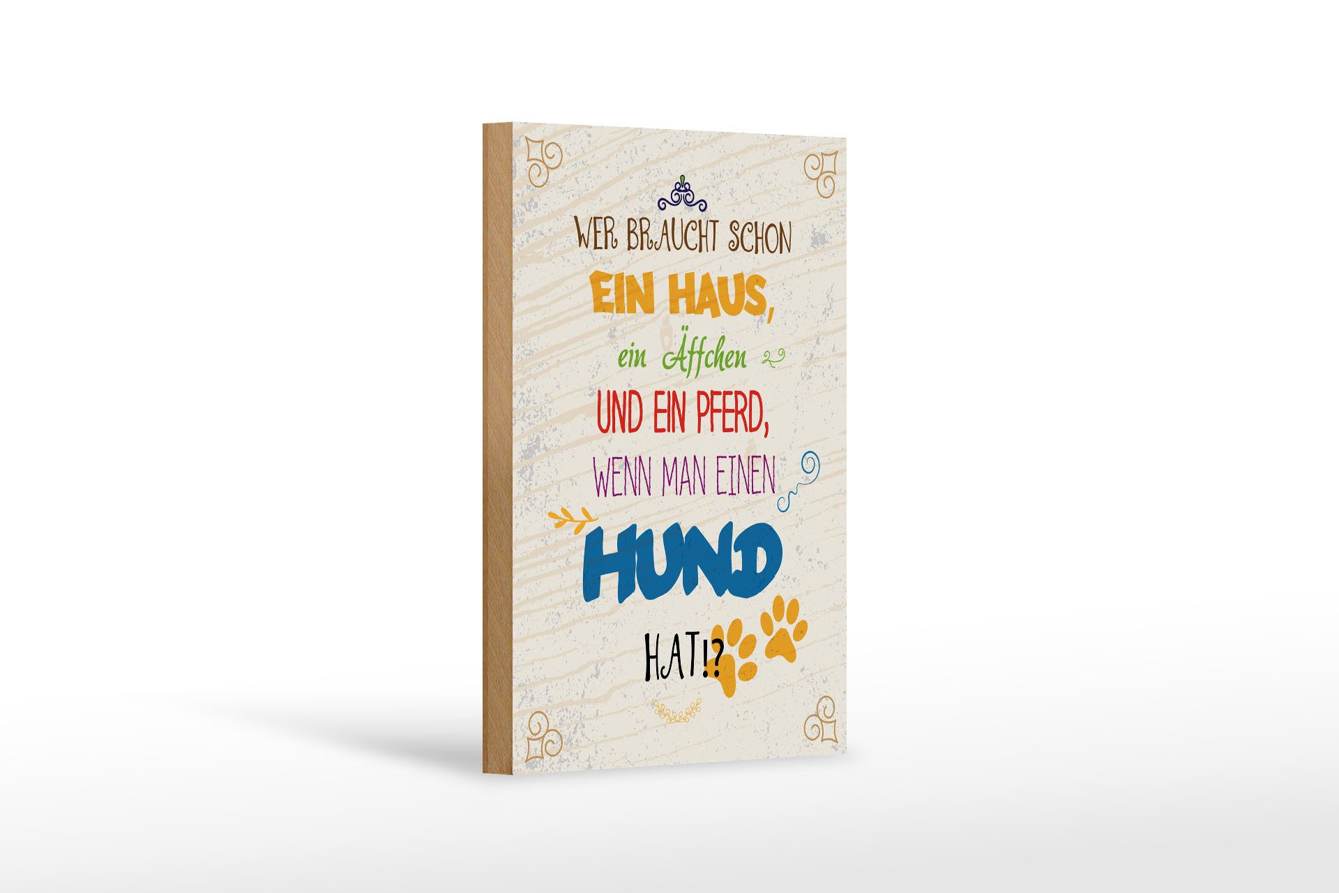 Femer GmbH Holzbild Hund 20x30 cm Wer braucht schon ein Haus ein Äffchen und ein Pferd, (1 St), Glatte Holzfaserplatte (MDF), vorn beschichtet