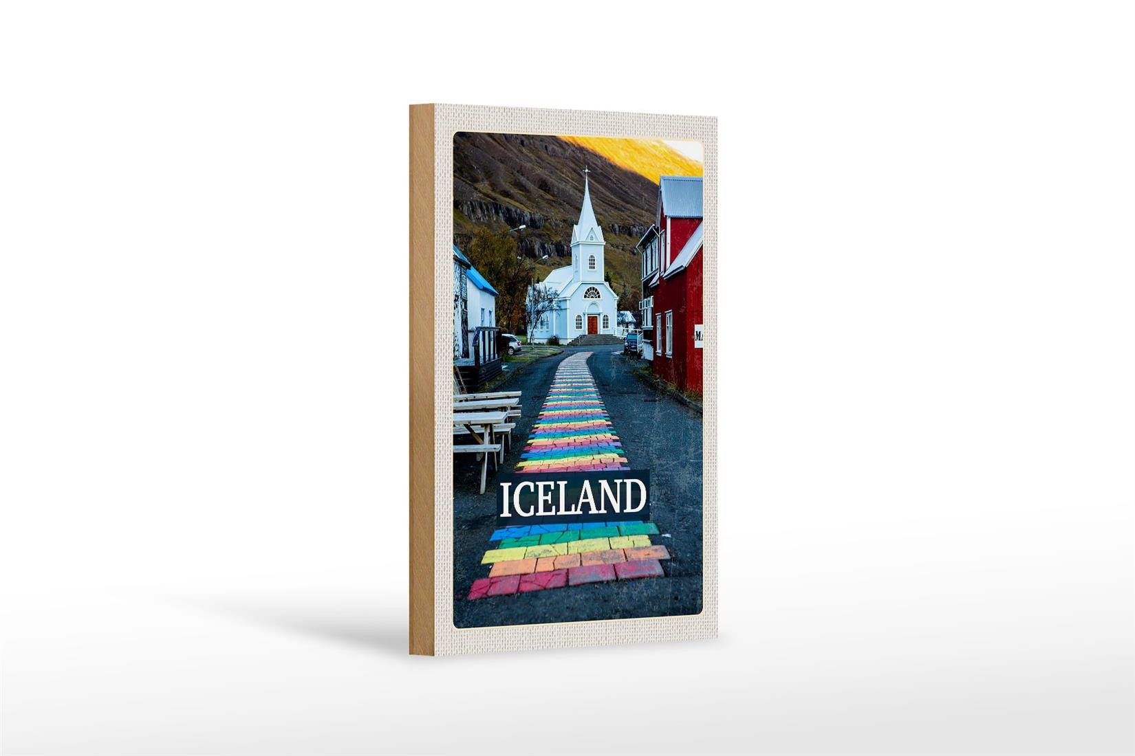 Femer GmbH Holzbild Reise 12x18 cm Iceland Iselstaat Kirche, (1 St), Glatte Holzfaserplatte (MDF), vorn beschichtet