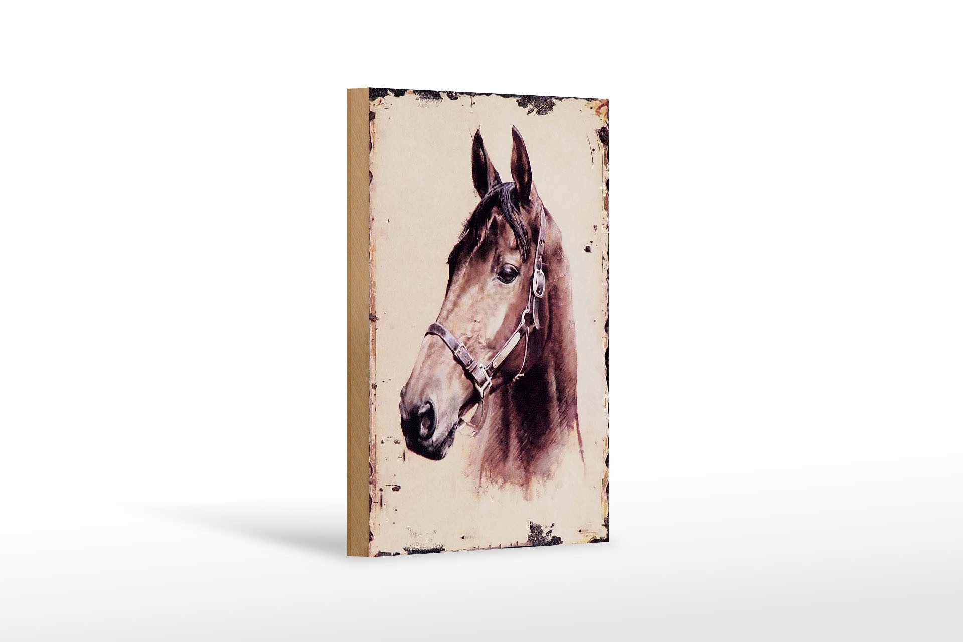 Femer GmbH Holzbild Retro 12x18 cm Portrait Pferd Kopf, Nostalgie Retro Altes (1 St), Glatte Holzfaserplatte (MDF), vorn beschichtet