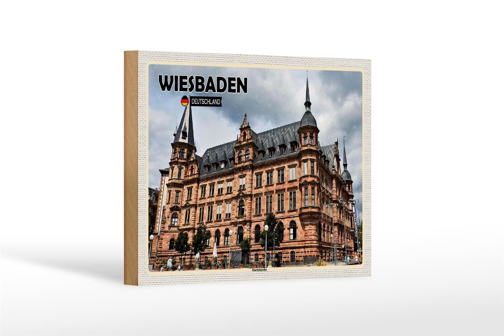 Femer GmbH Holzbild Städte Wiesbaden Marktkirche Mittelalter 18x12 cm, (1 St), Glatte Holzfaserplatte (MDF), vorn beschichtet