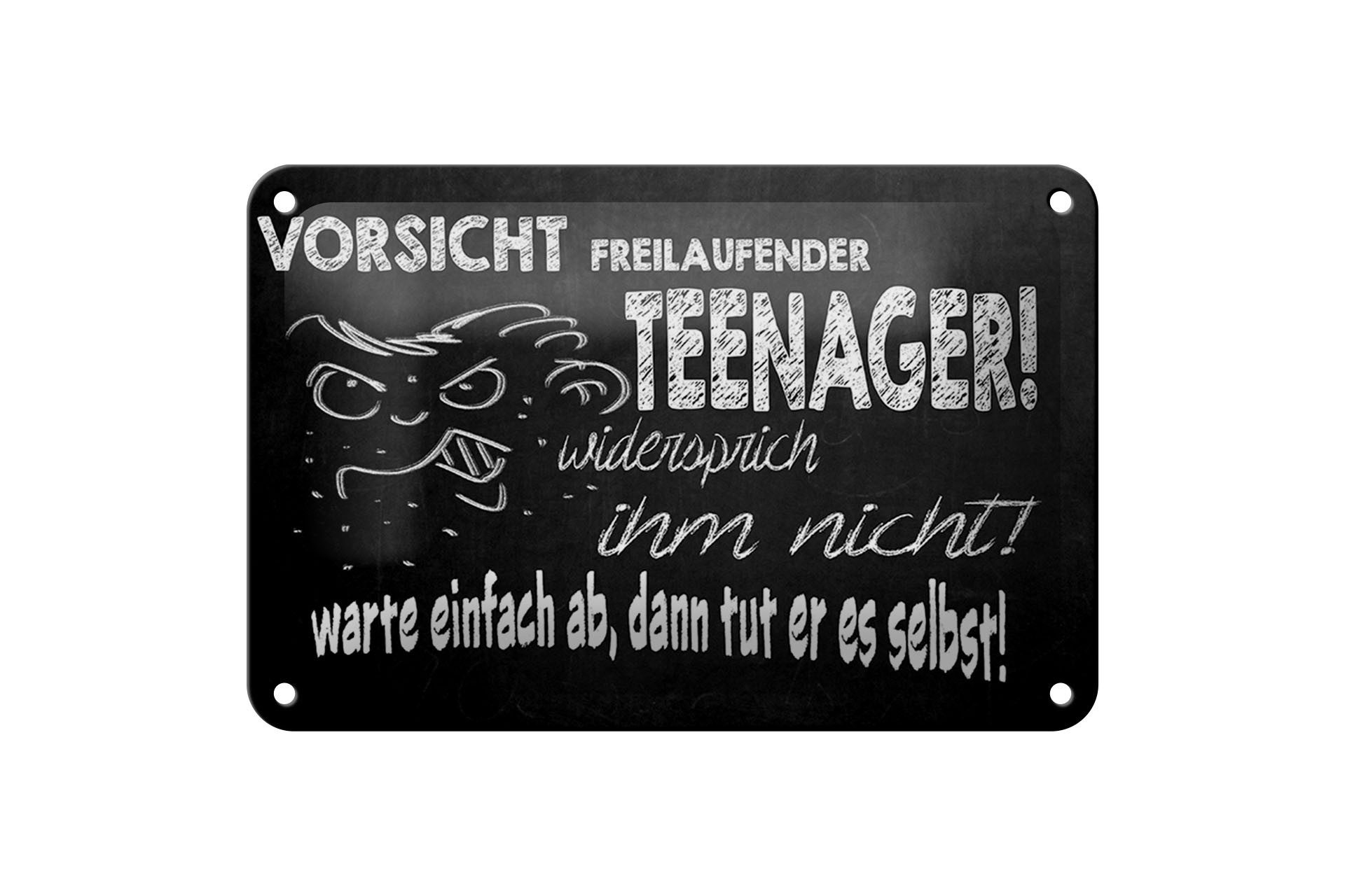 Femer GmbH Metallschild Spruch 18x12cm Vorsicht freilaufender Teenager, (1 St), gewölbte Oberfläche, abgerundete Ecken, umgeschlagene Kanten