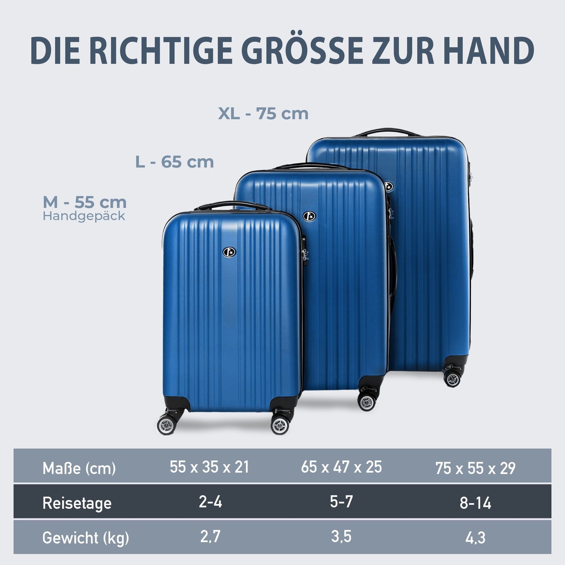 Die verschiedenen Größen - Handgepäck, Medium und XL Koffer bieten alle Optionen, egal ob Kurzreise oder den Jahresurlaub, ob Vielflieger, Gelegenheitsurlauber oder für Geschäftsreisen.