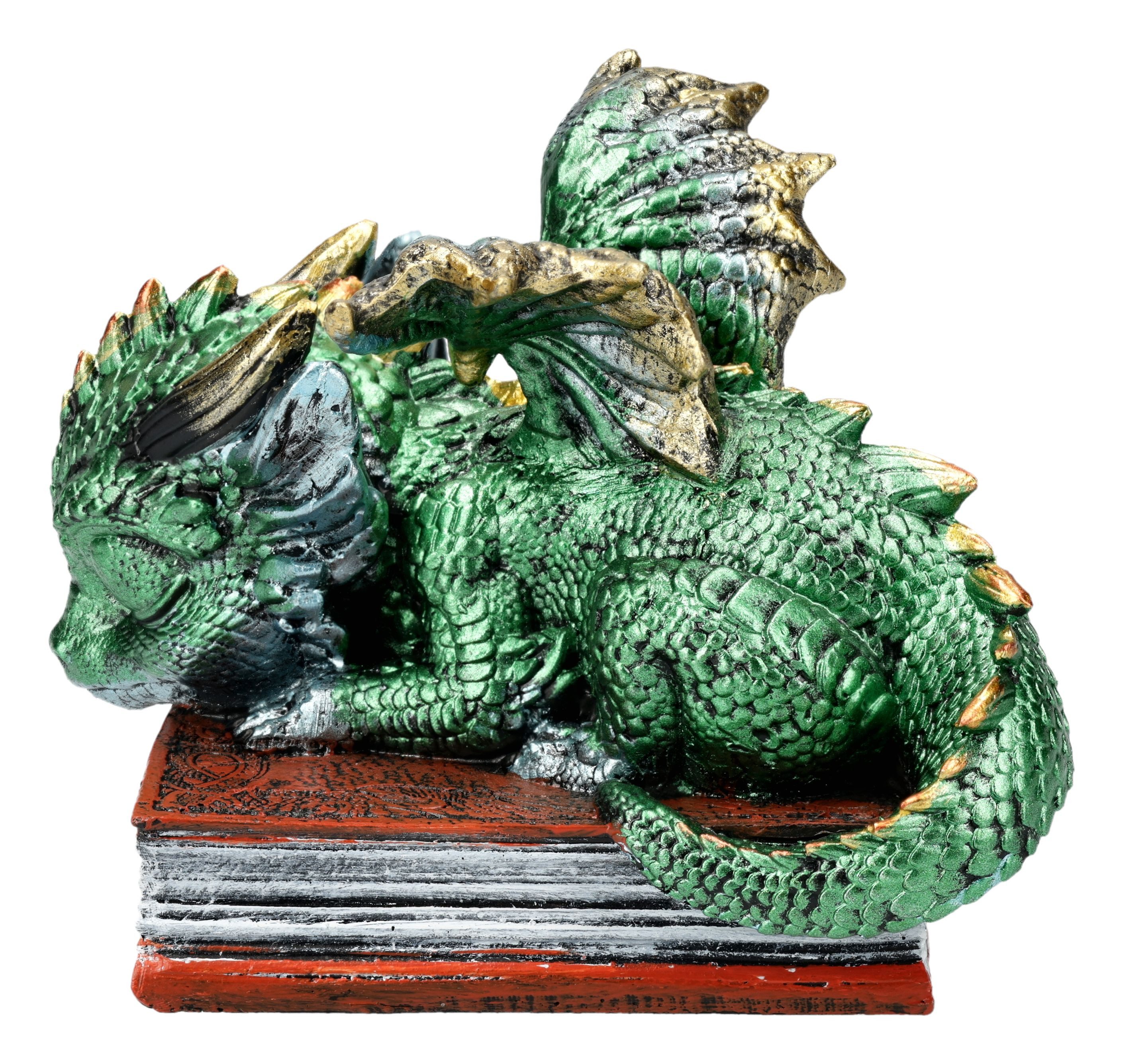 Mit einer Höhe von 8 cm, einer Breite von 10 cm und einer Tiefe von 9 cm ist diese detailreiche Sammlerfigur ein perfektes Highlight für Regal, Schreibtisch oder Nachttisch. Gefertigt aus hochwertigem Kunststein (Polyresin) und sorgfältig handbemalt, besticht sie durch filigrane Details – von den feinen Schuppen bis zu den goldenen Buchverzierungen.