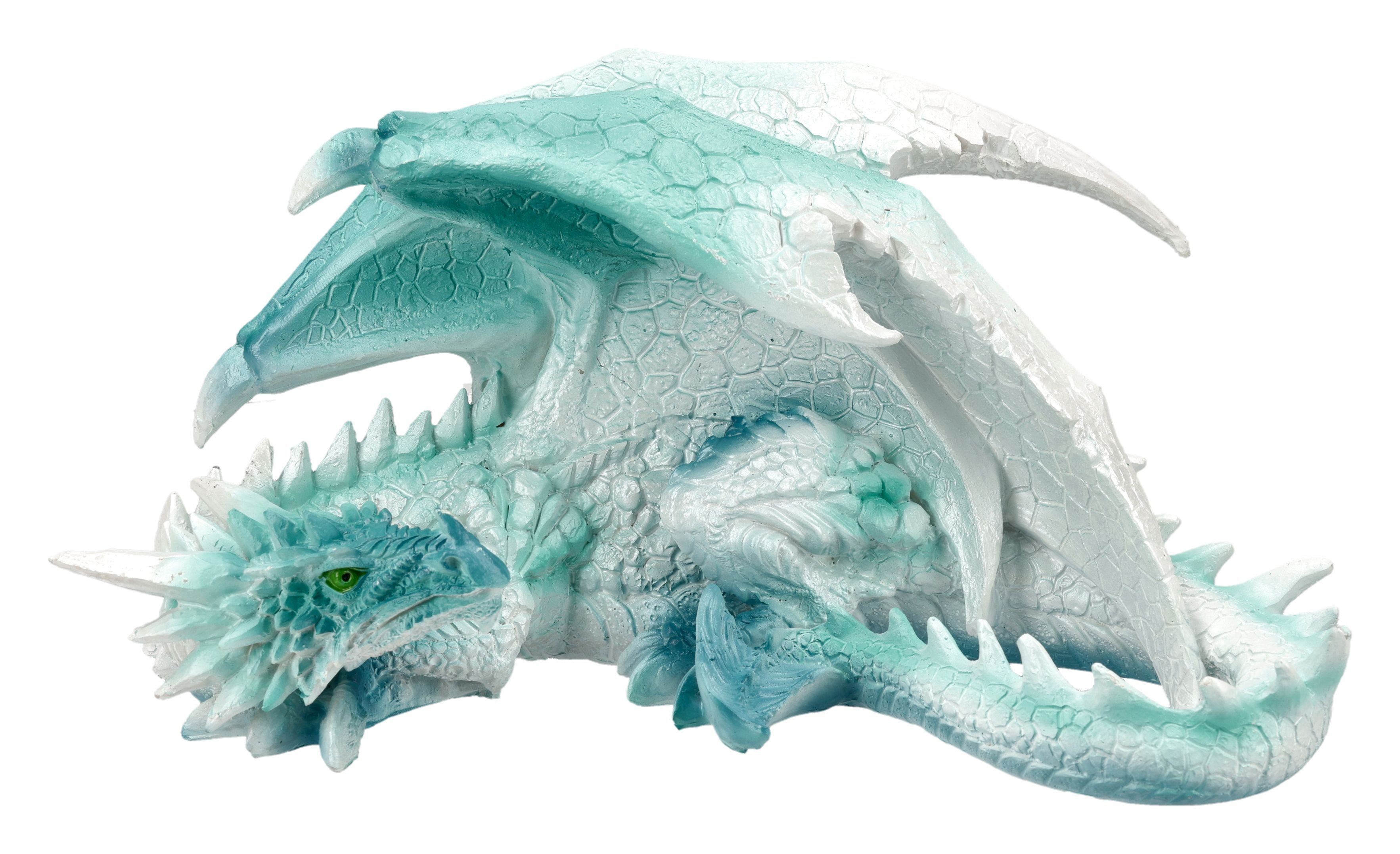 Eisdrache Figur – majestätische Fantasy Statue in Weiß und Blau