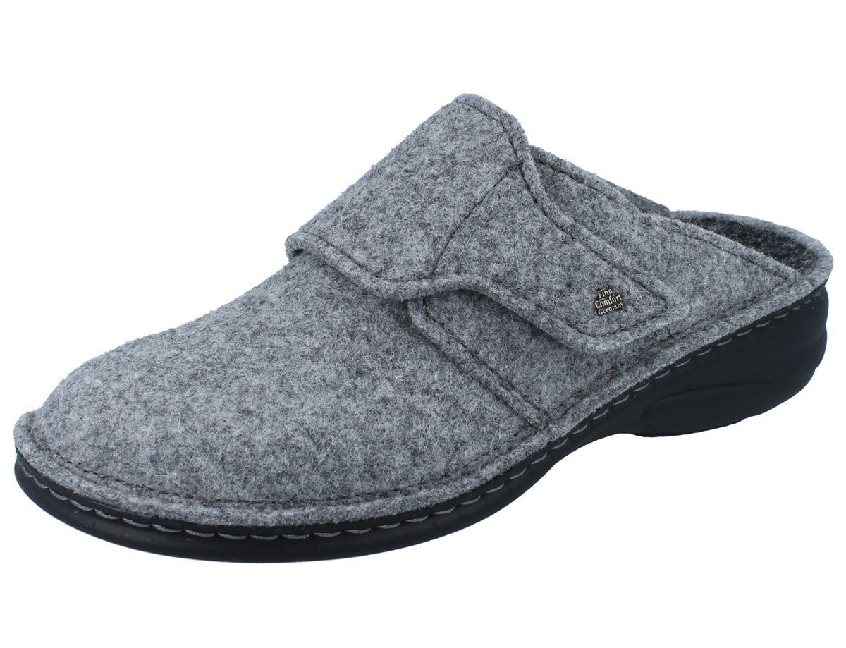 Das neue Schuhmodell Goms der Marke FinnComfort ist ein warmer und bequemer Damenhausschuh aus neutral hellgrauem Wollfilz.
