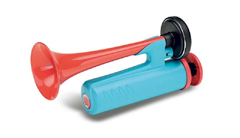 Umweltfreundliche Luftdruckfanfare ohne Treibgas Durch Pumpen mit der Hand wird der Luftdruck für vollen Sound erzeugt. Für Sport, Veranstaltungen, Signalgebung, Fasching, Karneval. Struktur und Trichter aus Kunststoff Leistung 112dB in 2m Distanz gemessen. Maße: L/B/H 239x110x76,5 mm Gewicht 190 gr Topprodukt Made in Italy