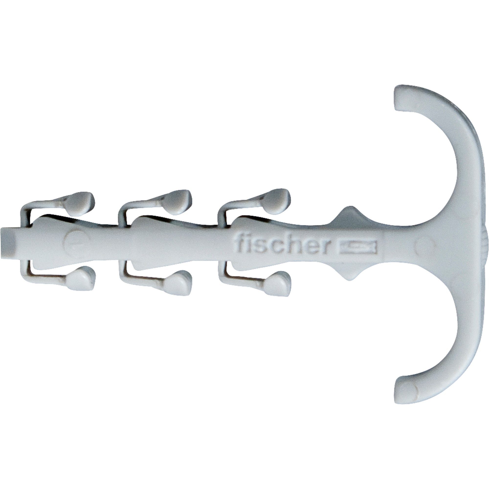 100 Stück, mit Doppelbügel Die fischer Steckfix plus Zwillingsschelle SF plus ZS ist eine montagefreundliche und wirtschaftliche Lösung zur Befestigung von zwei Leitungen oder Rohren mit nur einer Schelle. Sie eignet sich für leichte Elektrokabel, Kabelbündel, flexible Rohre und starre Kunststoff-Isolierrohre verschiedener Durchmesser. Die aus hochwertigem Nylon hergestellte Zwillingsschelle vereint Dübel, Schraube und Schelle in einem Bauteil. Die innovative Elektrobefestigung wird ohne Schraube in das Bohrloch gesteckt und fixiert die Rohre und Leitungen direkt in Beton und Vollstein. Das spart Material, ermöglicht die Einhandmontage und reduziert die Montagezeit. Die schlanke Geometrie der Steckfix SF plus trägt nur gering auf und spart somit auch Platz. Das langlebige Nylonmaterial ist flammwidrig, halogen- und silikonfrei, ermöglicht den ganzjährigen Einsatz auch bei Frost und sorgt für hohe Sicherheit. Die Steckfix plus Zwillingsschelle SF plus ZS hält auch bei extremen Temperaturbelastungen von -20°C bis +80°C.