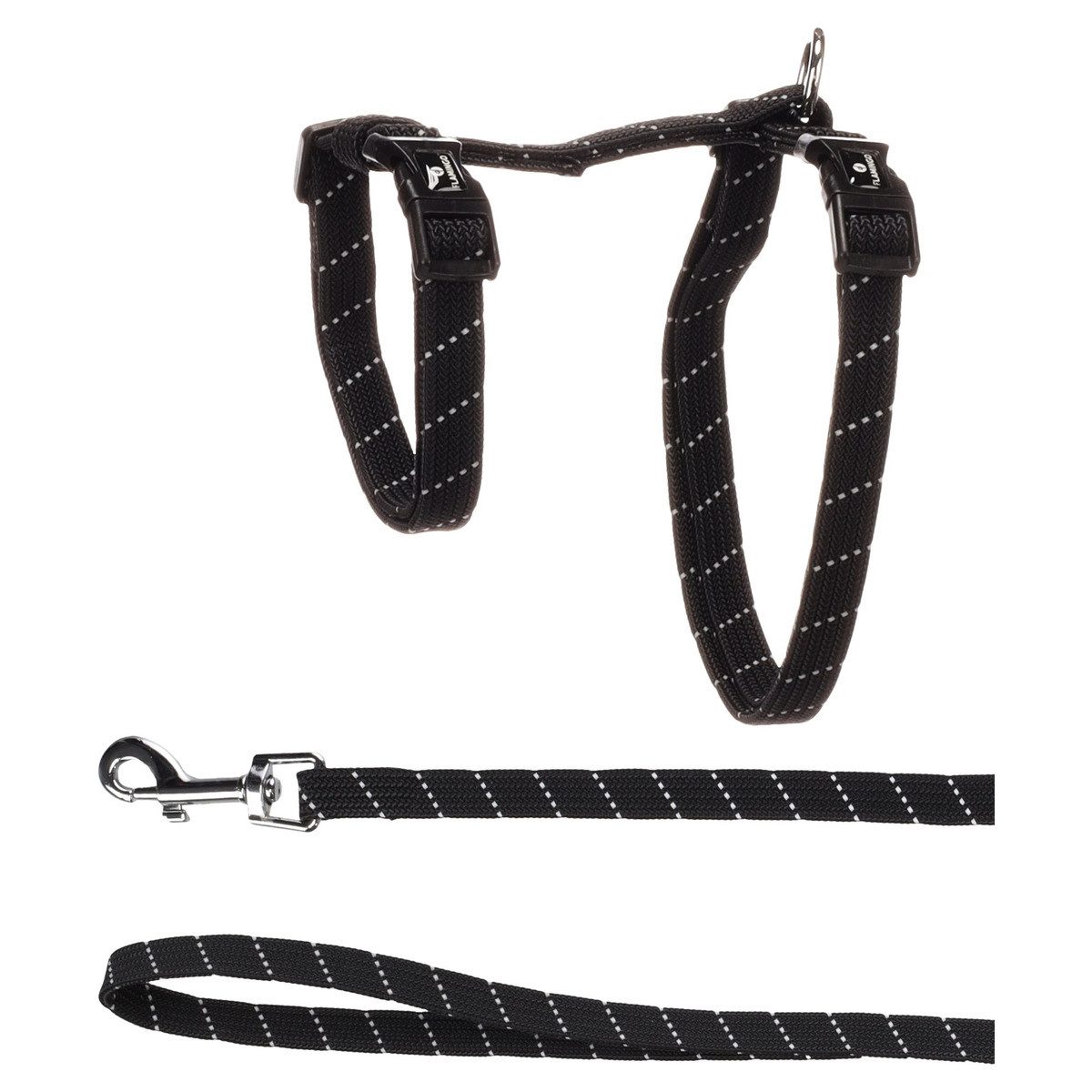 Ausgestattet mit praktischen Klickverschlüssen sorgt das Geschirr für eine einfache Handhabung. Die reflektierenden Details erhöhen die Sicherheit Ihrer Katze bei schlechten Lichtverhältnissen.