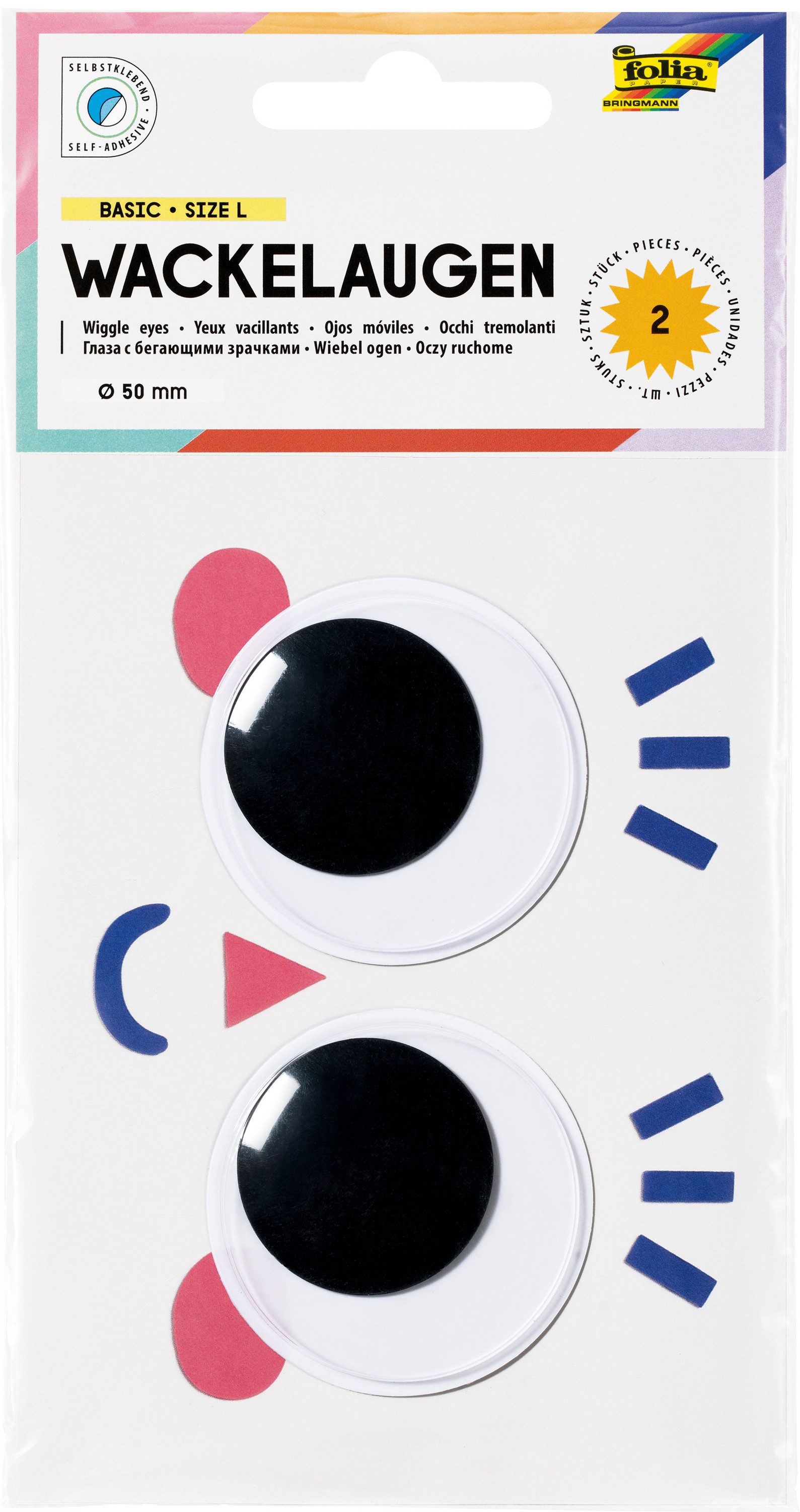 Mit den selbstklebenden Wackelaugen 'Basic' von folia in Ø 50 mm kannst du deiner Kreativität freien Lauf lassen. Perfekt zum Aufkleben auf Papier, Stoff oder Filz, sind sie ein Muss für jede Bastelkiste. Ob du Figuren verzierst oder lustige Grußkarten gestaltest, die Anwendungsmöglichkeiten sind vielfältig. Dank der praktischen Selbstklebefunktion sparst du Zeit und Mühe. Diese Wackelaugen aus Kunststoff kommen im 2er Set und bieten dir zahlreiche Möglichkeiten, deine Bastelprojekte lebendig und einzigartig zu gestalten. Lass deiner Fantasie freien Lauf und bringe ein Lächeln auf die Gesichter deiner Liebsten.