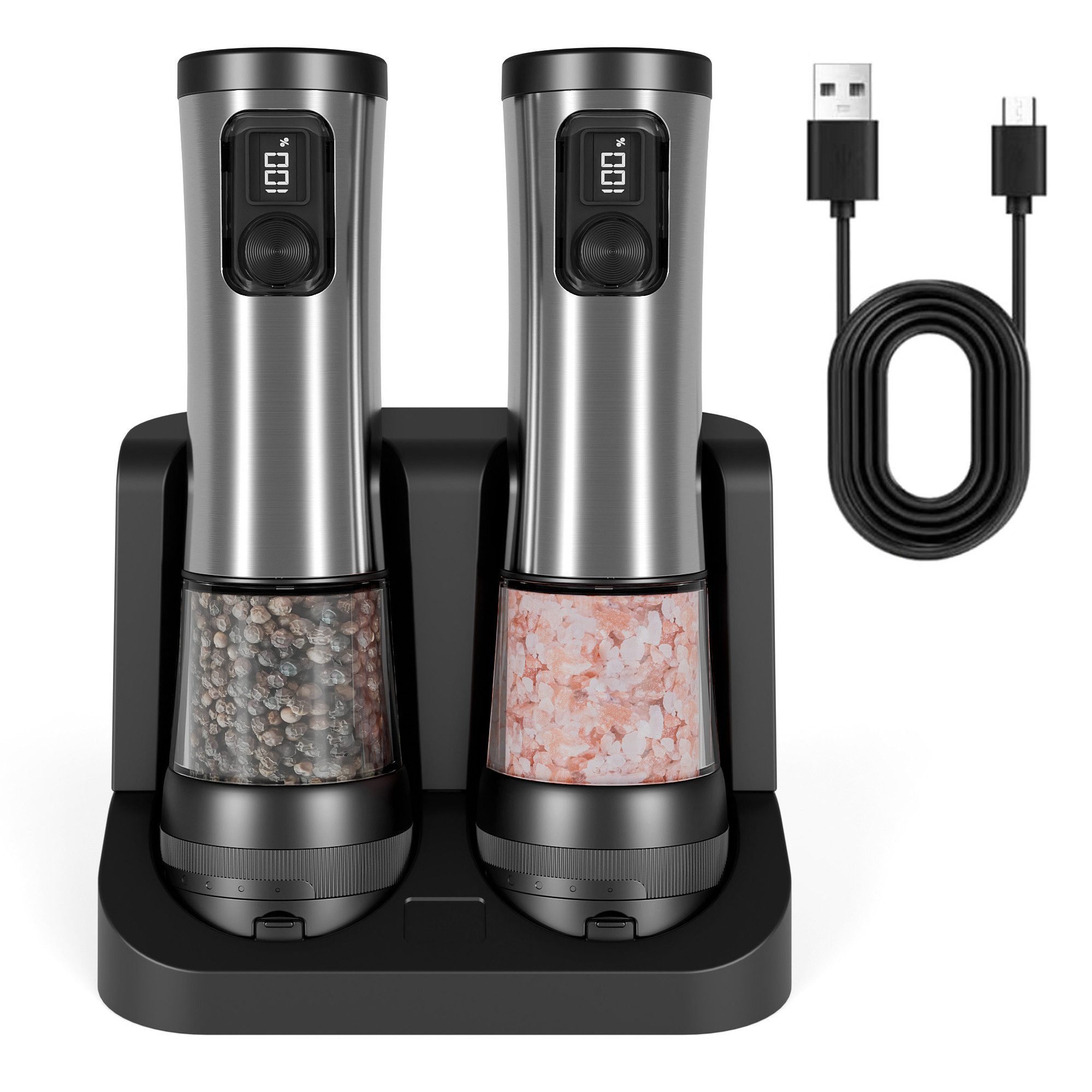 Genießen Sie maximalen Komfort in Ihrer Küche mit diesem elektrischen Salz- und Pfeffermühlen-Set im 2er-Pack. Ausgestattet mit einer kabellosen Ladestation, USB-C-Aufladung, einstellbarem Mahlgrad und automatischer Einhandbedienung, bringt dieses Set Eleganz und Effizienz auf Ihren Esstisch. Die integrierte LED-Anzeige informiert über den Akkustand, während das transparente Design eine einfache Kontrolle des Füllstands ermöglicht. Ideal für Salz, Pfeffer und andere Gewürze.