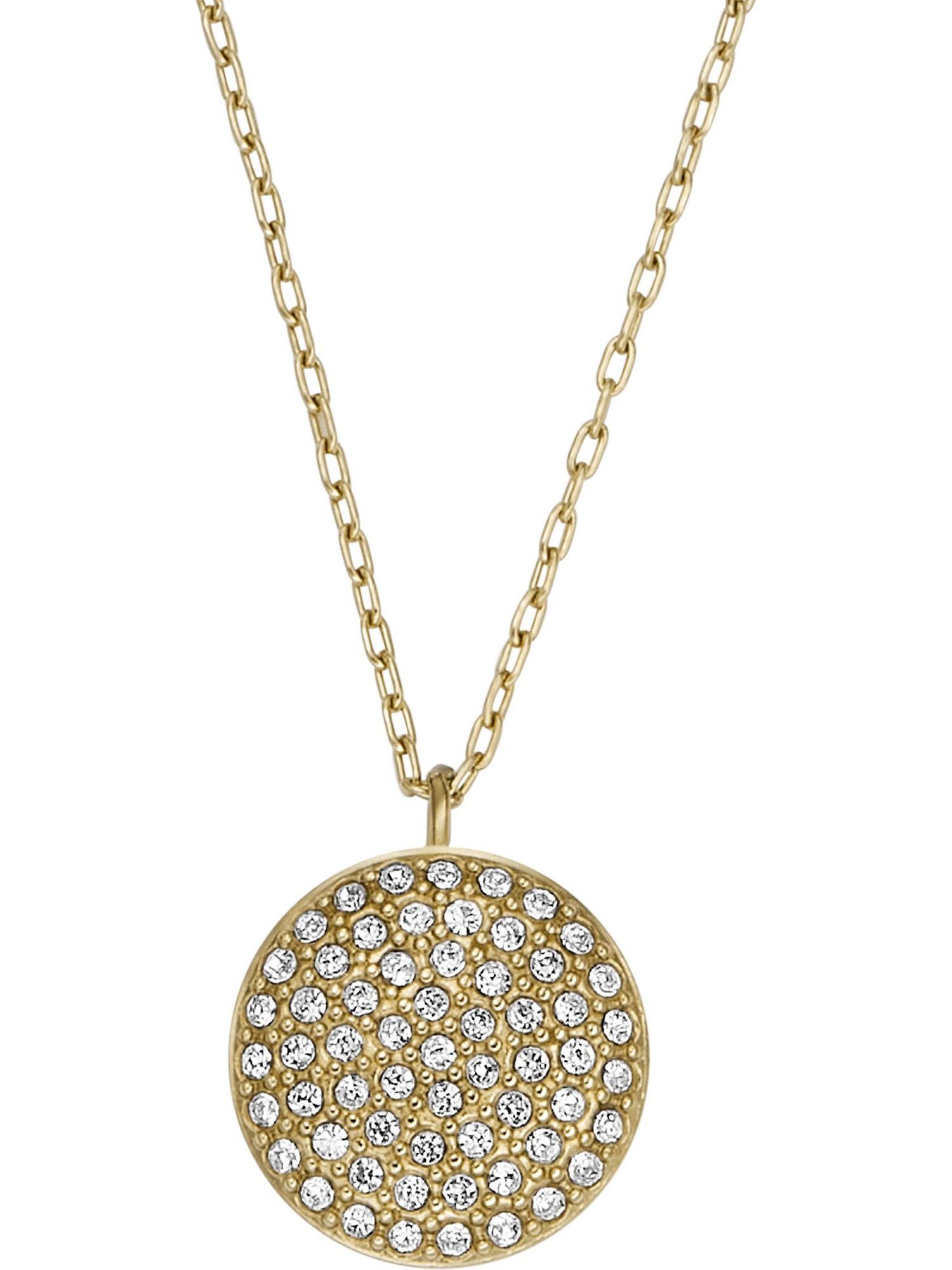 Ein absolutes Must-Have für modebewussten Frauen: Die stylische Collierkette aus der SADIE-Kollektion von Fossil aus Edelstahl in der Farbe Gold, perfekt für den Alltag. Glitzerndes Highlight ist der Besatz mit Glasstein, der das Licht einfängt und die Blicke auf sich zieht. Die Kette misst 47 cm und ist damit mittellang, wodurch sie sich vielseitig kombinieren lässt und zu zahlreichen Ausschnittformen passt. Für einen edlen, goldenen Schimmer und eine pflegeleichte, abriebfeste Oberfläche sorgt eine haltbare Edelmetall-Beschichtung, sie ist poliert. Eine Kette, die genauso facettenreich ist wie du – perfekt, um deinen ganz eigenen Stil zu zeigen.