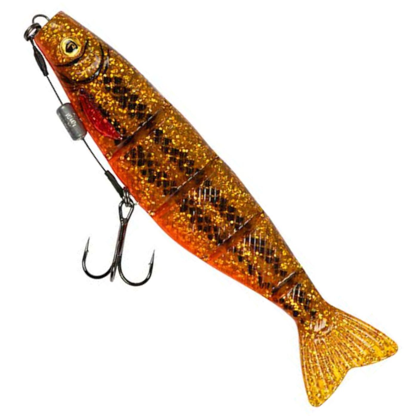 Fox Rage Pro Shad Jointed Loaded - montierter Gummifisch - Der Gummiköder von Fox Rage ist bereits an einem Raubfischsystem samt Bauchgewicht fertig montiert und somit beim Spinnangeln auf Hechte und Zander sofort einsatzbereit. Der Gummishad besitzt aufgrund seiner Einkerbungen an den Flanken eine sehr gute Beweglichkeit und ein verführerisches Laufverhalten.
