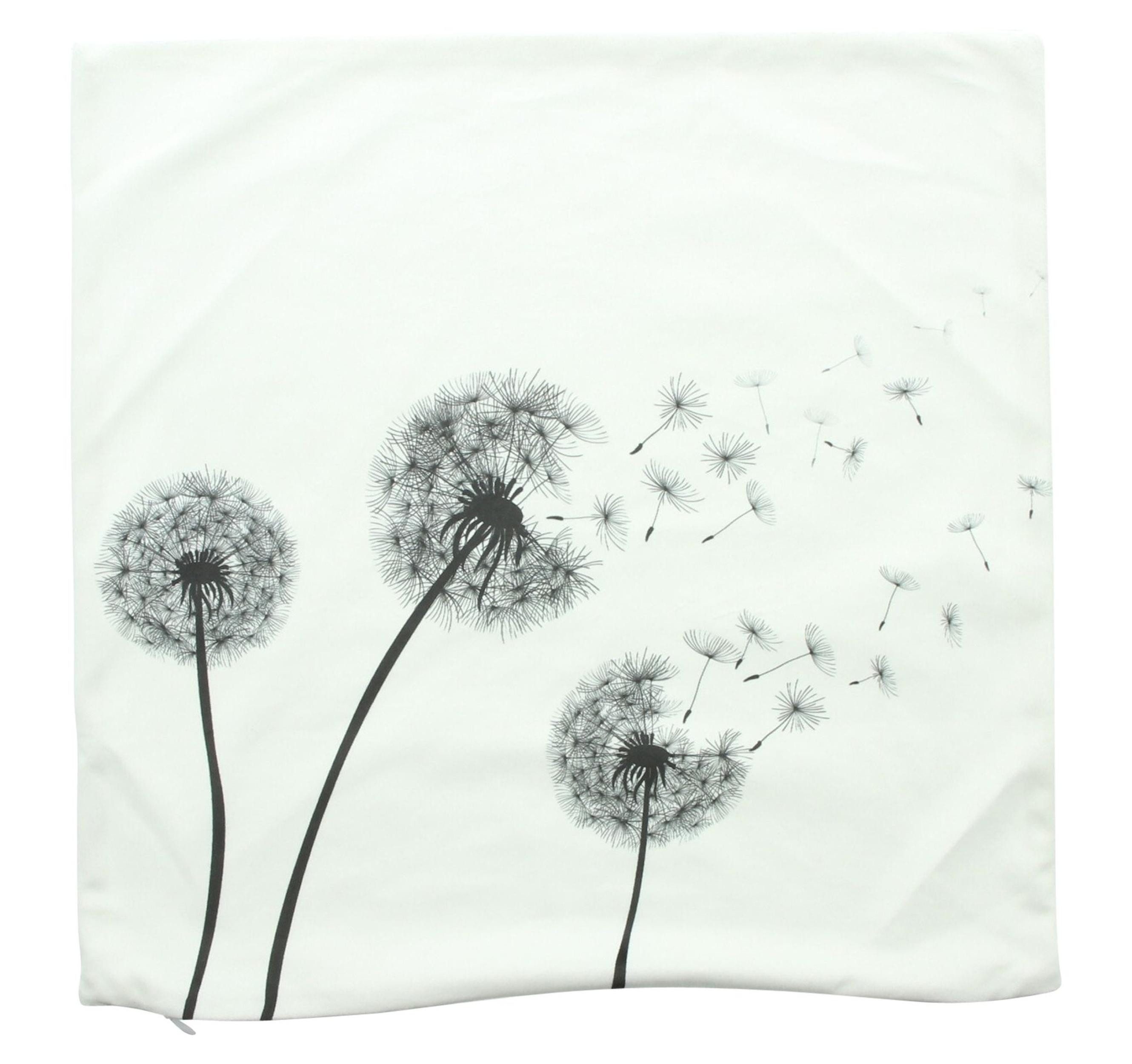 Kissenhülle "Pusteblume": Die Kissenhülle "Pusteblume" aus hochwertigem Holland-Velvet. Weißer Grundstoff in Samtoptik mit schwarzem Blumenmotiv. Rückseite Uni, Reißverschluss. Aus 100% Polyester. Qualität und Eleganz für stilvolle Wohnraumgestaltung.