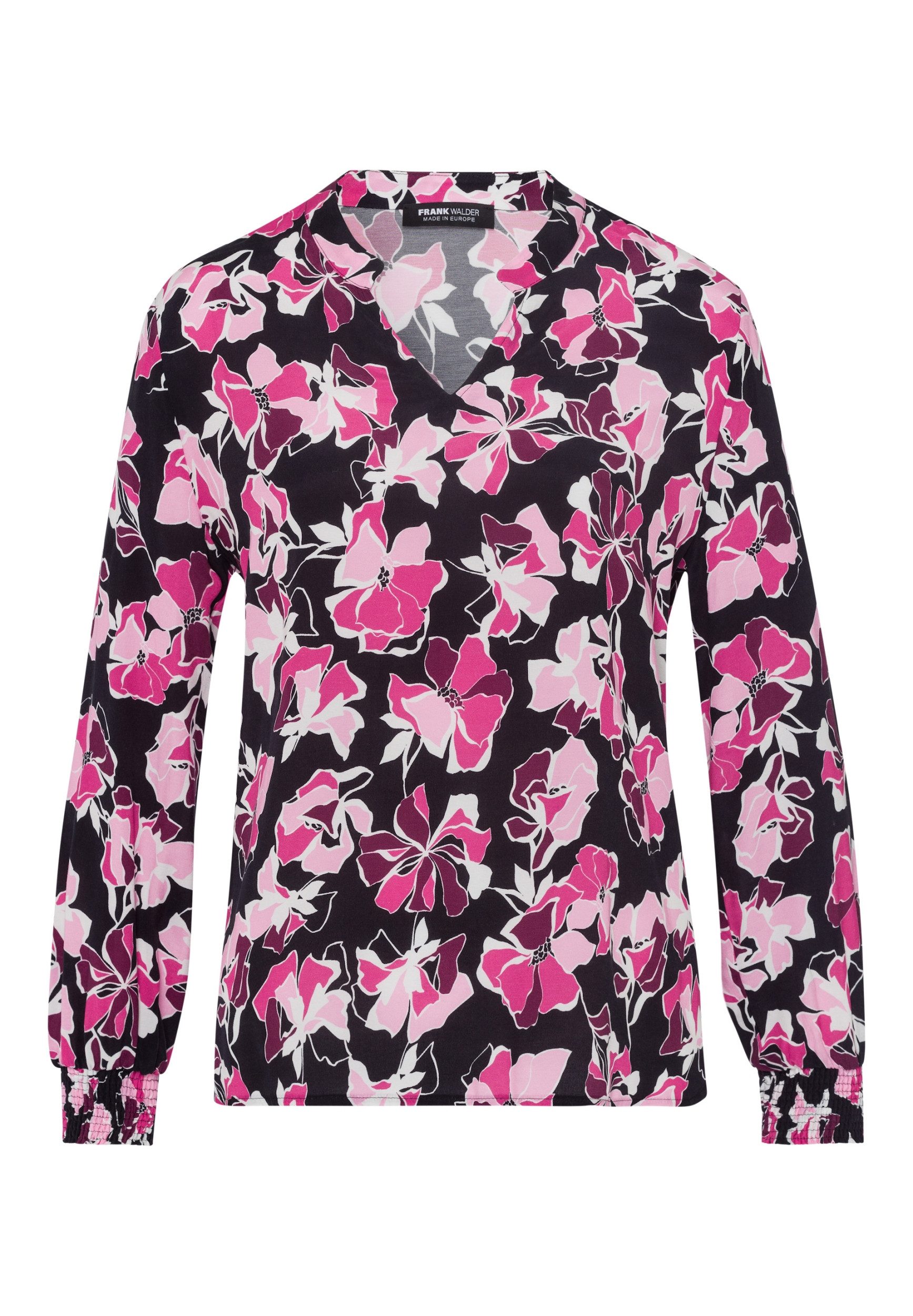 Erleben Sie Stil und Komfort mit unserer modischen Damenbluse zum Drüberstreifen. Diese locker fallende Bluse besticht durch ihren modernen Schnitt und eine vorteilhafte Länge, die jeder Figur schmeichelt. Hergestellt aus hochwertigem Cupro-Viskose-Druck, enthält sie ECOVERO? Fasern für nachhaltigen Tragekomfort. Der hübsche Blütenprint verleiht der Bluse einen femininen Touch. Mit Details wie einem aparten Ausschnitt, einem Armsaum mit modernem Smokeabschluss und einem verlängerten Rückteil wird diese Bluse schnell zum Lieblingsteil in Ihrem Kleiderschrank.