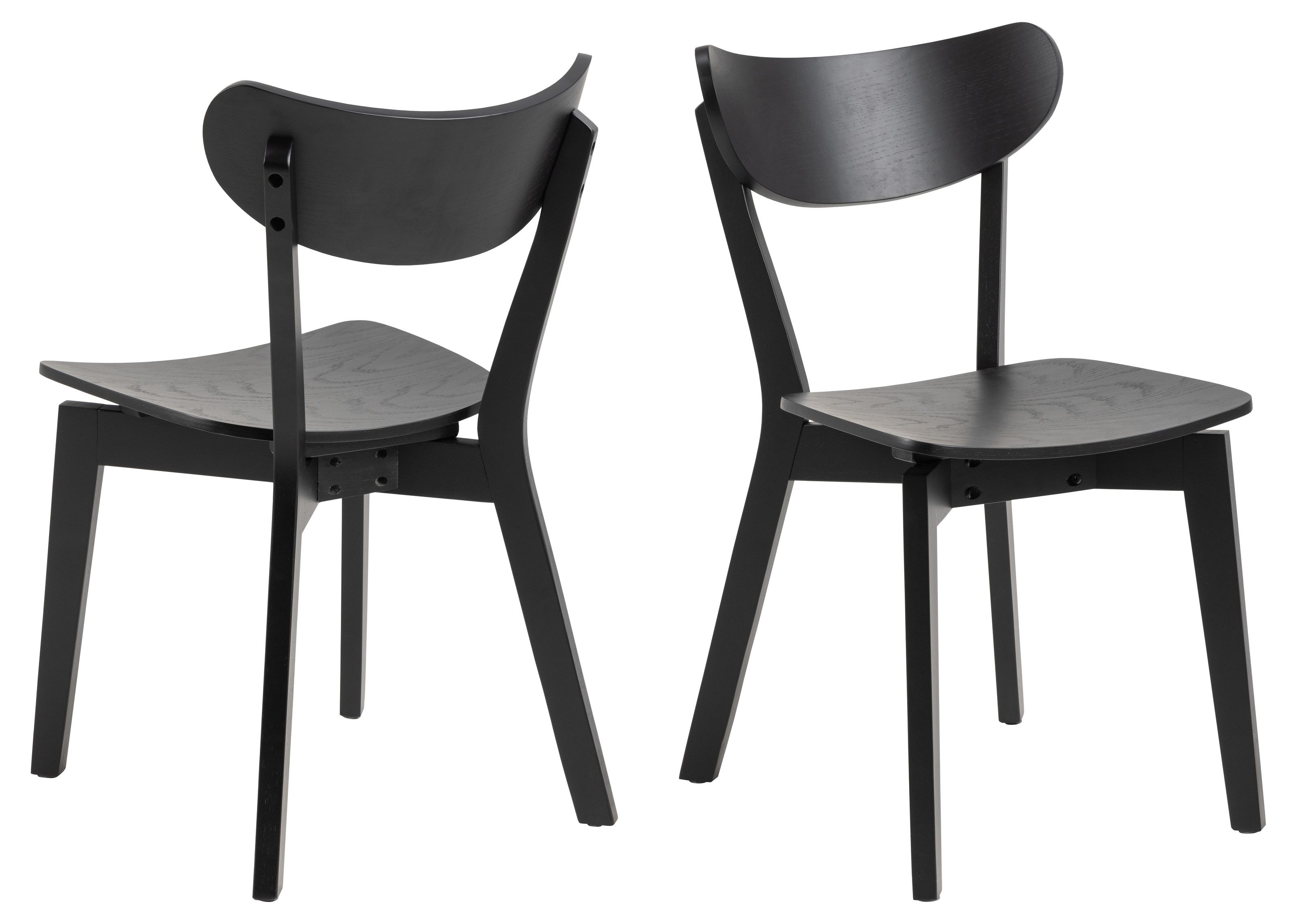 Hochwertige Materialien: Die Stühle verfügen über eine Sitzfläche aus Eiche Furnier matt schwarz SH Lack und ein Gestell aus mattem schwarzem Rubberwood, robust und langlebig.