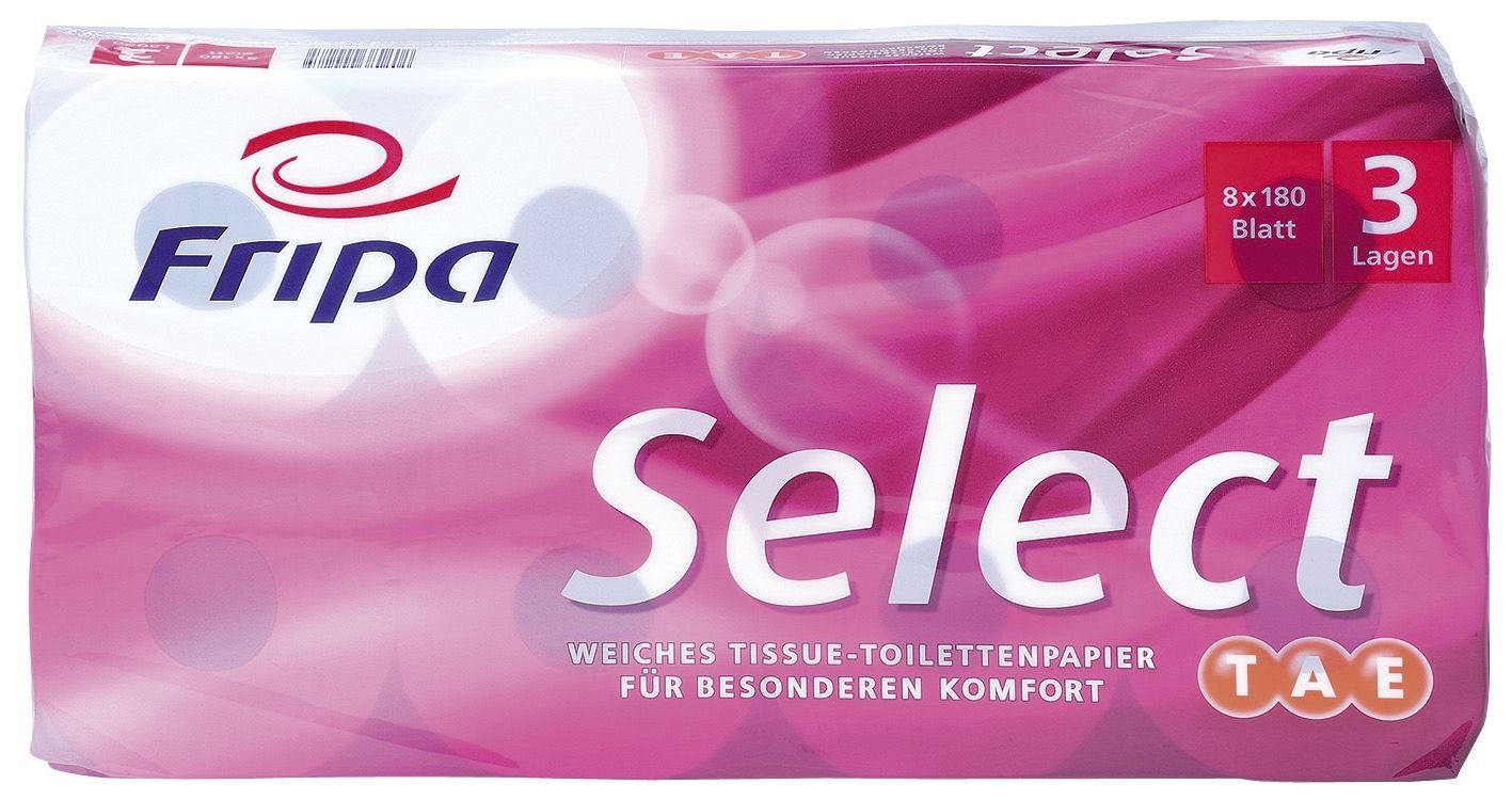 Fripa Select Toilettenpapiere sind die beste Wahl wenn maximaler Komfort gewünscht wird. Die patentierte Doppelseitenprägung sorgt für angenehme Griffigkeit. Das ist echter Luxus. TAE Qualität.