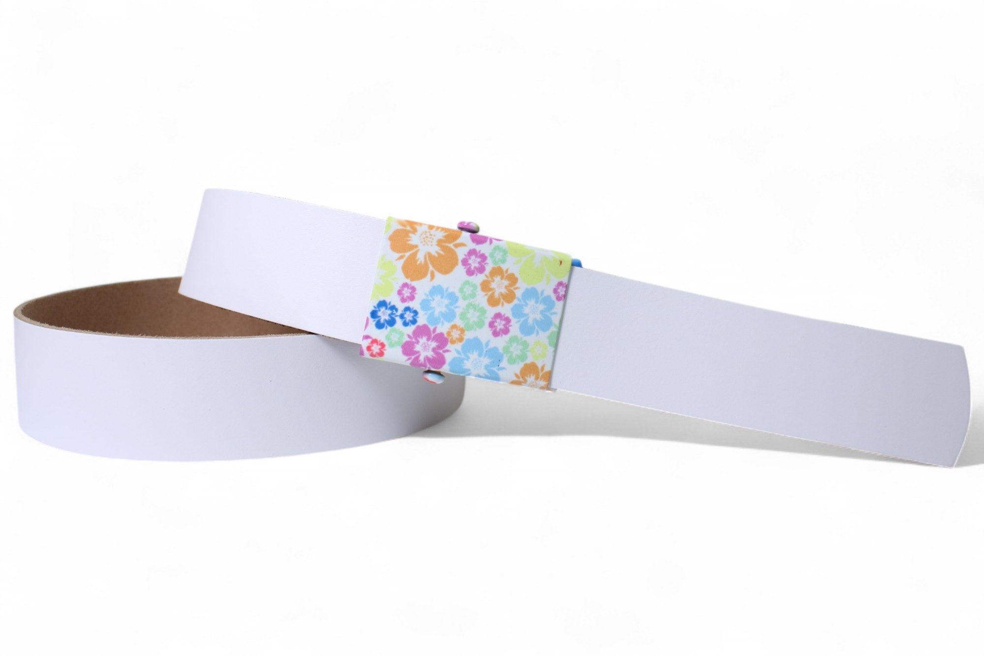 Die Automatikschnalle im floralen, farbenfrohen Design ist ein Blickfang und aus Qualitätsmetall gearbeitet; die Schnalle misst ca. 6 × 4,5 cm und kann bei Bedarf abgenommen werden. Der Gürtel ist selbst kürzbar: Schnalle aufklappen, Riemen an gewünschter Stelle abschneiden und Schnalle wieder befestigen.