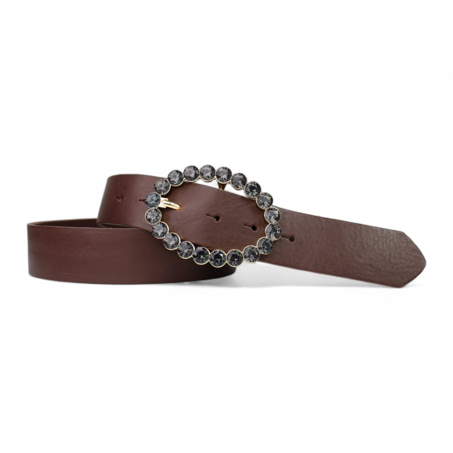 Dieser Damengürtel kombiniert geschmeidiges, chromfrei in Europa pflanzlich gegerbtes Vollrindleder mit einer dekorativen, ovalen Schnalle. Das einlagige Leder ist anilin gefärbt und fühlt sich weich und natürlich an. Mit ca. 3,3 mm Riemenstärke und ca. 4 cm Breite liegt der Gürtel angenehm am Körper und bringt Struktur in Casual- sowie elegante Outfits.