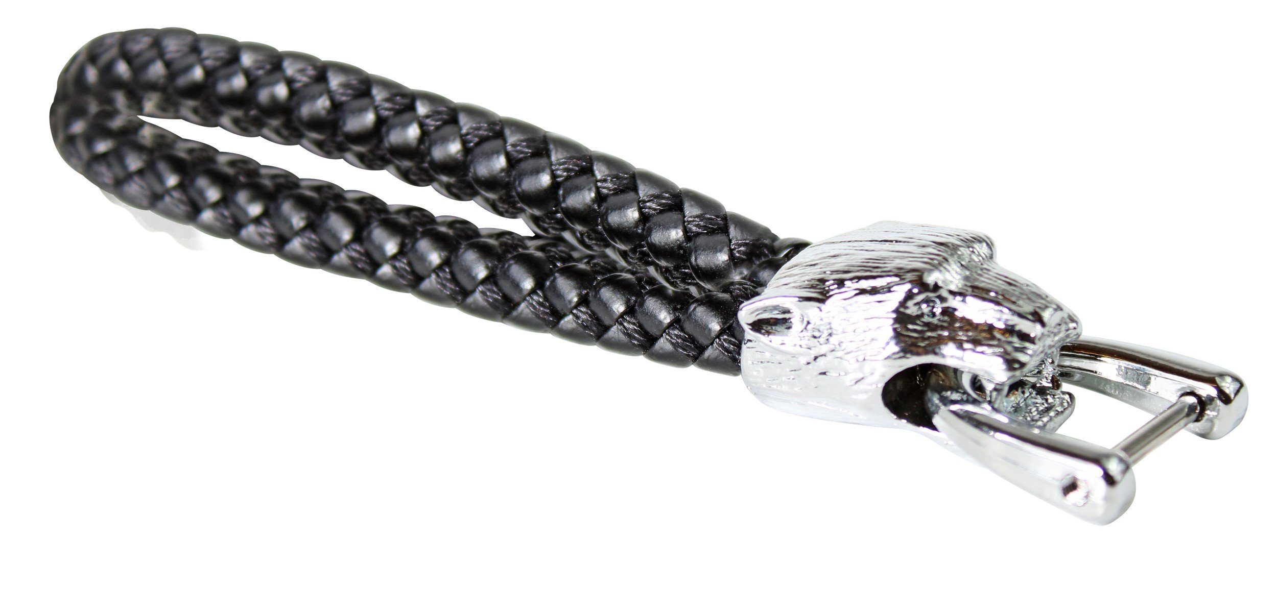 Schlüsselanhänger aus schwarzer PU Kordel mit einem auffallendem Pantherkopf, der die Befestigung für die Schlüssel im Maul hält. Mitgeliefert wird ein kleines Werkzeug zum Öffnen der Schraube. Super einfache Handhabung!