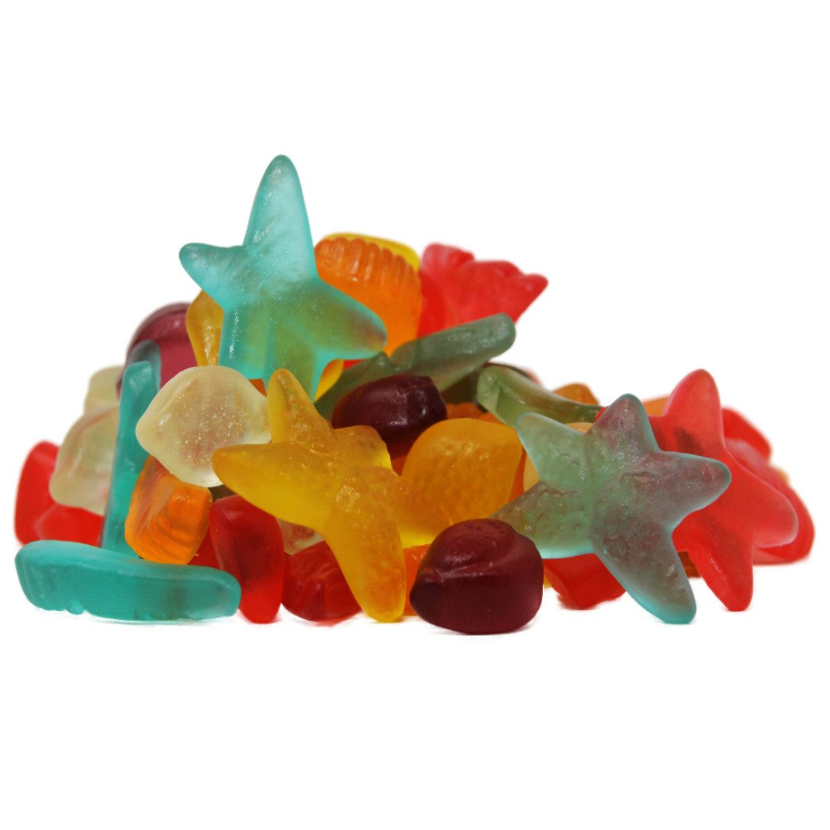Zutaten: Maltitsirup, Gelatine, Wasser, Säuerungsmittel: Zitronensäure, Aroma, Überzugsmittel: Öl pflanzlich, Carnaubawachs, Farbstoff ( kann enthalten sein ) Karmin, Brillantblau FCF, Chlorophylle, Ammoniak - Zuckerkulör, Brilliantschwarz BN, Pflanzenkohle, Lutein, Steviolglycoside.