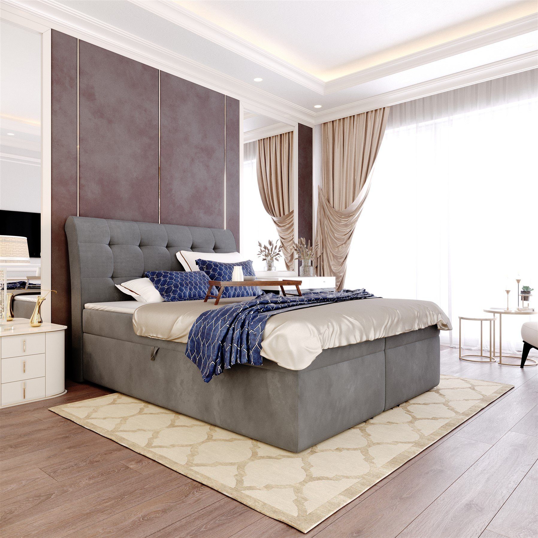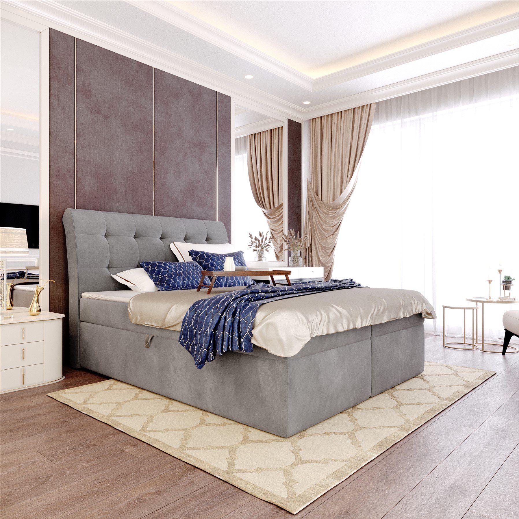 | Lieferumfang | Boxspringbett Schlafzimmerbett DASIO in Stoff Cloud inkl. Bettkästen und Topper |