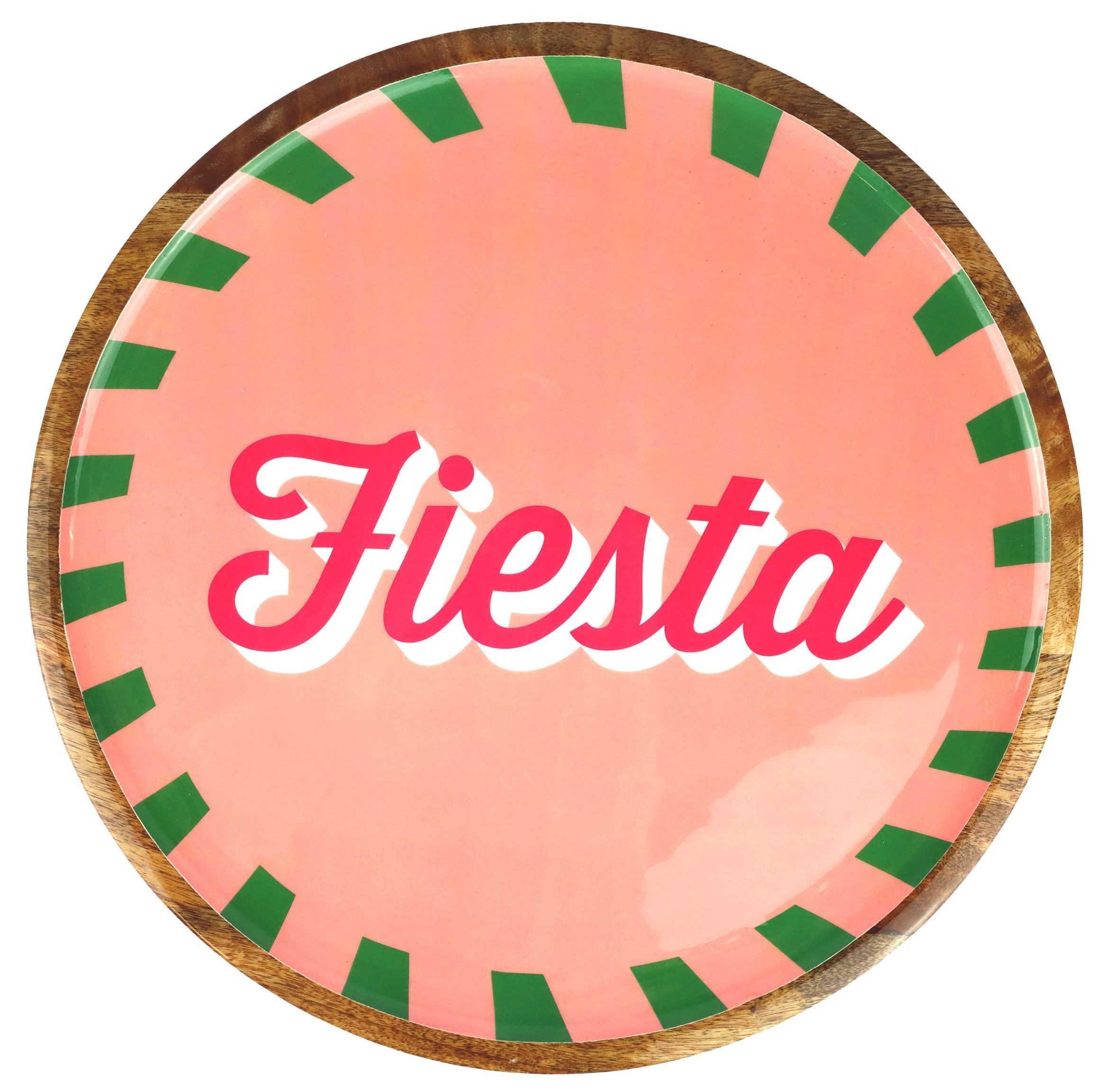 Mit der FURNARO Platte Fiesta setzen Sie farbenfrohe Akzente auf Ihrem Tisch. Hergestellt aus nachhaltigem Mangoholz und handbemalt im Retrodesign, ist diese runde Servierplatte nicht nur praktisch, sondern auch ein echter Hingucker. Die leuchtenden Farben und der Fiesta-Schriftzug bringen Lebensfreude auf jede Tafel. Mit einem Durchmesser von 40,5 cm und einer leicht erhöhten Kante eignet sich die Platte perfekt zum Servieren von Snacks, Obst oder Tapas. Das hochwertige Mangoholz sorgt für Stabilität und Langlebigkeit. Ob für Feste, Sommerpartys oder einfach als stilvolle Deko-;diese Platte begeistert durch Design und Funktion.
